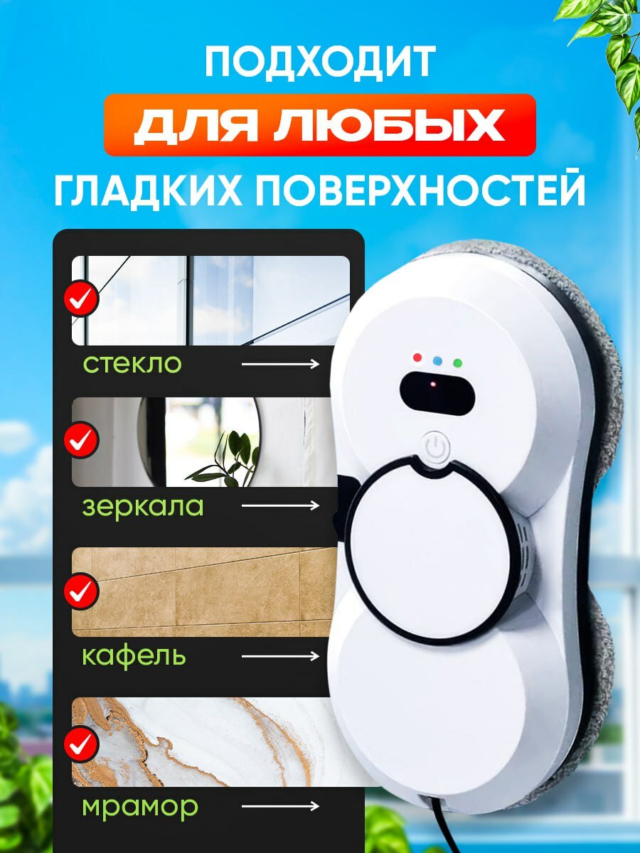 Современный робот-мойщик окон – это передовое решение для быстрой и качественной очистки стеклянных поверхностей. Данное устройство оборудовано инновационными системами навигации и очистки, что делает его высокотехнологичным помощником. Благодаря датчикам и микроконтроллерам, робот самостоятельно определяет параметры окна и выбирает оптимальную траекторию движения. Автоматический мойщик оснащен продвинутой навигационной системой и мощным вакуумным мотором, гарантируя устойчивое сцепление с поверхностью и безупречную чистоту. Робот-мойщик окон с функцией распыления автоматически наносит моющий состав, предотвращая появление разводов и пятен. Специальная система увлажнения равномерно распределяет жидкость, обеспечивая максимальную эффективность очистки. Это не просто удобный гаджет, а настоящее спасение для владельцев. Принцип работы устройства основан на равномерном распылении чистящего раствора и механическом удалении загрязнений микрофибровыми салфетками. Встроенный процессор контролирует движение по заданному пути, а датчики края исключают риск падения. Комплектация робота-мойщика включает: Основной блок с вакуумным насосом Пульт дистанционного управления Набор салфеток для очистки Страховочный трос Блок питания Емкость для воды Использование устройства не требует специальных навыков: достаточно зафиксировать робот на стекле, включить его и наблюдать за автономной работой. Это оптимальное решение для тех, кто ценит время и хочет получить профессиональную чистоту без усилий. Многоуровневая система безопасности, включая датчики края и страховочный трос, исключает риск падения. Устройство подходит как для стандартных, так и для панорамных окон при соблюдении минимальных размеров поверхности. Выбирайте комфорт и безопасность с роботом-мойщиком окон – надежным решением для безупречной чистоты стеклянных поверхностей!