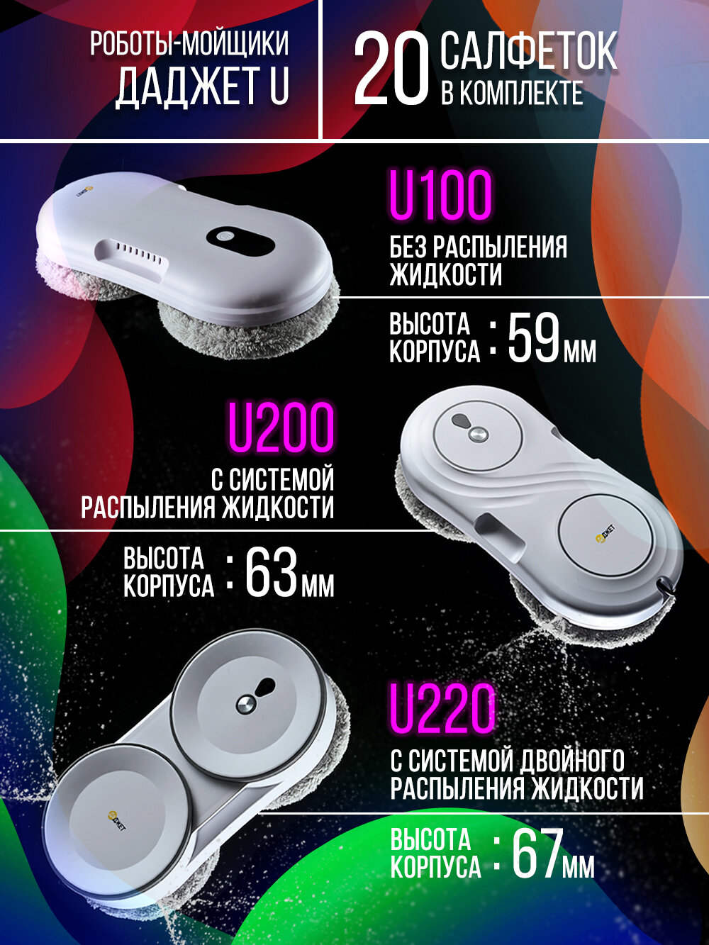 Робот мойщик окон c распылением Даджет U200, тонкий со сменными салфетками 20 шт.: сравнение цен, характеристики, фото, актуальное наличие и цены.