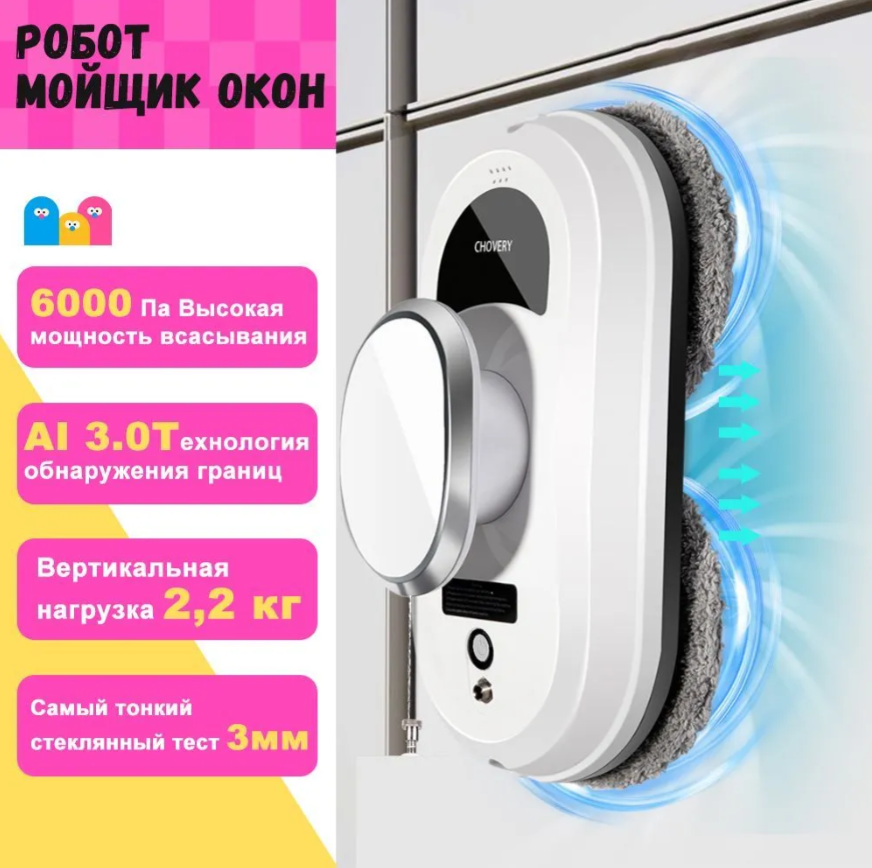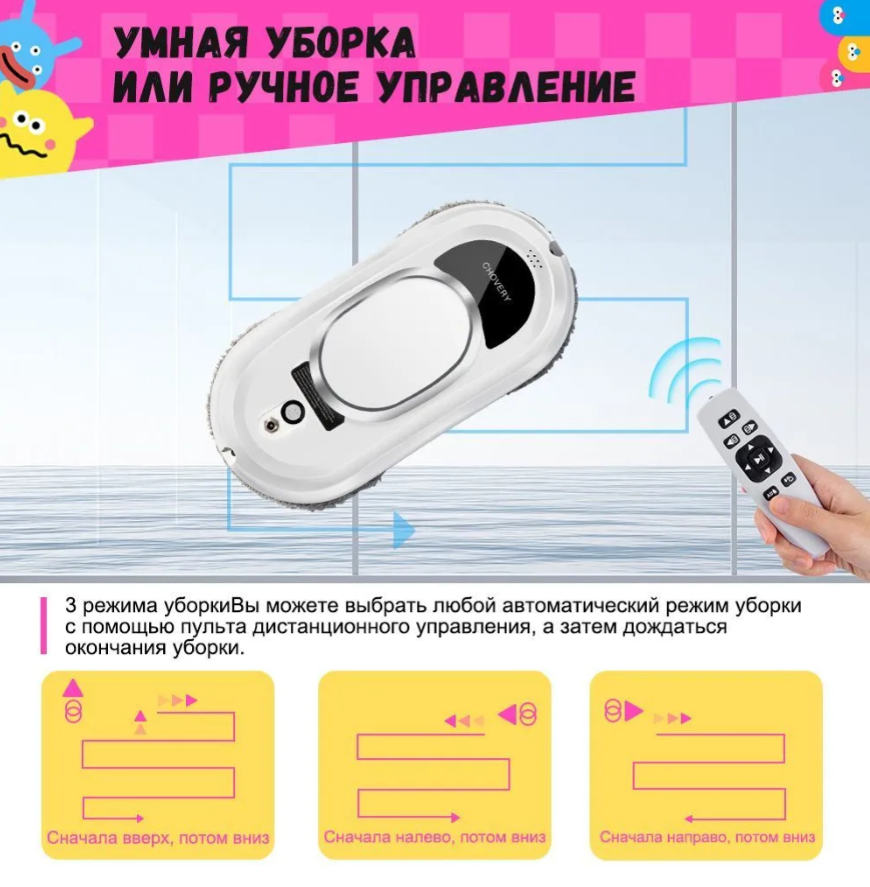 Купить Робот мойщик окон CHOVERY CL-1, Робот для мойки окон, 10 салфеток,120 мин, Пульт, Гарантия год с доставкой по всей России.