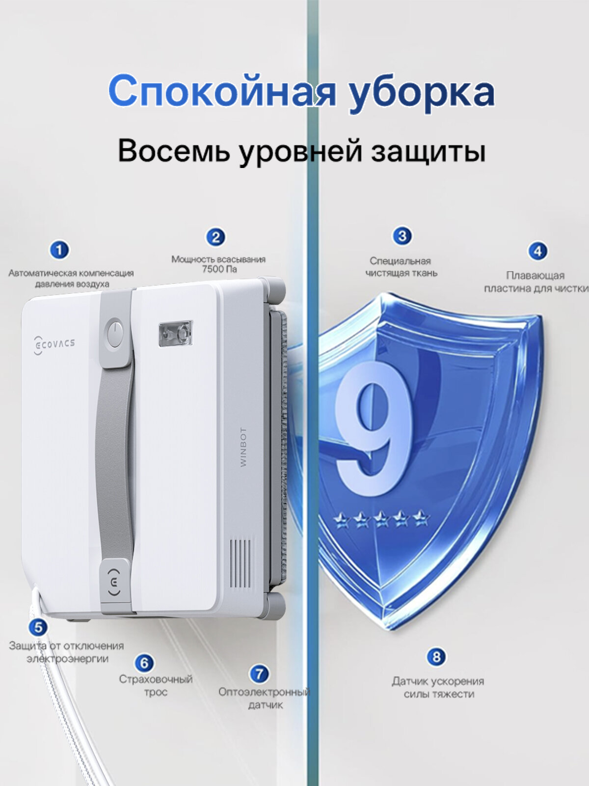 Выбирая робот-мойщик окон ECOVACS Winbot Mini, вы получаете современное и удобное решение для очистки окон, которое сделает ваш дом чистым и безопасным.