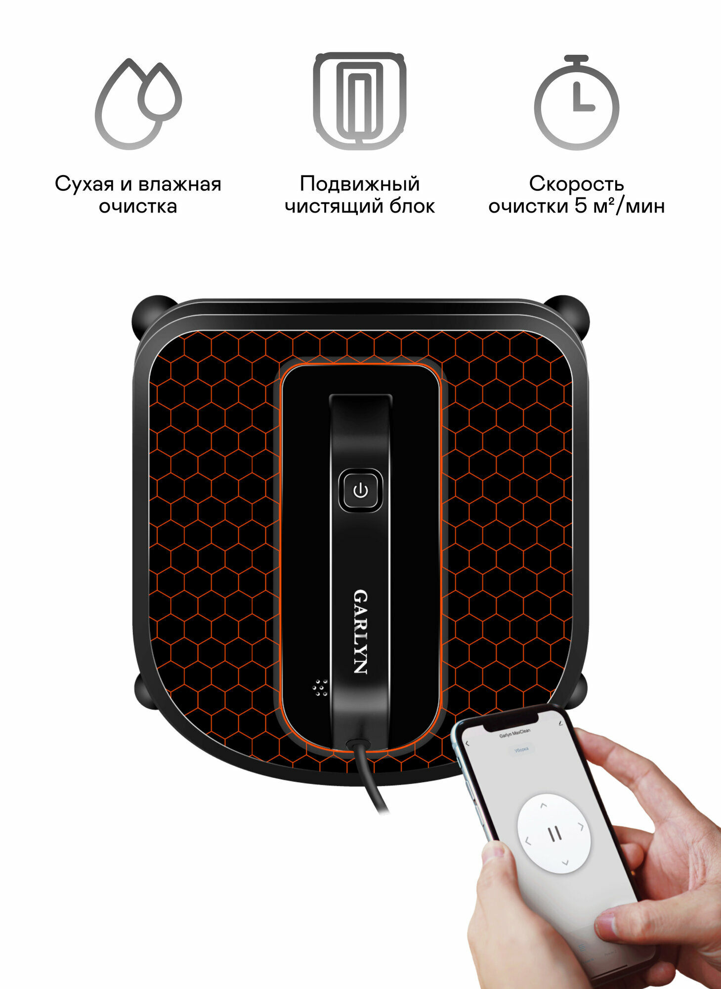Лучшее качество очистки вертикальных поверхностей GARLYN MaxClean эффективно справится не только с мытьём окон, но и с очисткой множества других видов гладких вертикальных поверхностей: · Гладкое и рельефное остекление · Кафельная плитка и другие виды гладких настенных покрытий · Крупные зеркала и корпусная мебель Не просто чисто, а безупречно чисто! Секрет тщательной очистки – специальный подвижный модуль, устраняющие даже стойкие загрязнения. Непрерывные движения насадки из стороны в сторону имитируют оттирающие движения как при ручной очистке, позволяя добиться чистоты даже на сильно загрязненных поверхностях. 5 автопрограмм уборки Для высоких или широких окон, для повторной очистки по всей площади или для устранения локальных загрязнений – просто выберите подходящую программу, всё остальное за Вас сделает стеклоочиститель MaxClean! Очистка по всей площади Тщательно слаженная система датчиков чётко определяет границы окон, позволяя роботу вплотную подъехать к оконной раме, не оставляя неочищенных участков. Идеален для безрамного остекления Благодаря датчикам перепада высоты MaxClean определит границы безрамной поверхности и не выедет за её пределы. Чисто и безопасно! Минимум времени на очистку GARLYN MaxClean не только тщательно очищает загрязнения, но и делает это по-настоящему быстро. Скорость очистки – до 5 м²/мин. Для наиболее качественной работы устройства, пожалуйста, сперва запустите робот-пылесос для окон GARLYN MaxClean на сухую очистку, чтобы снять первичные сильные загрязнения. Когда робот завершит процесс, запустите стеклоочиститель повторно уже на влажную очистку (слегка смочив салфетки из микрофибры жидкостью для очищения).