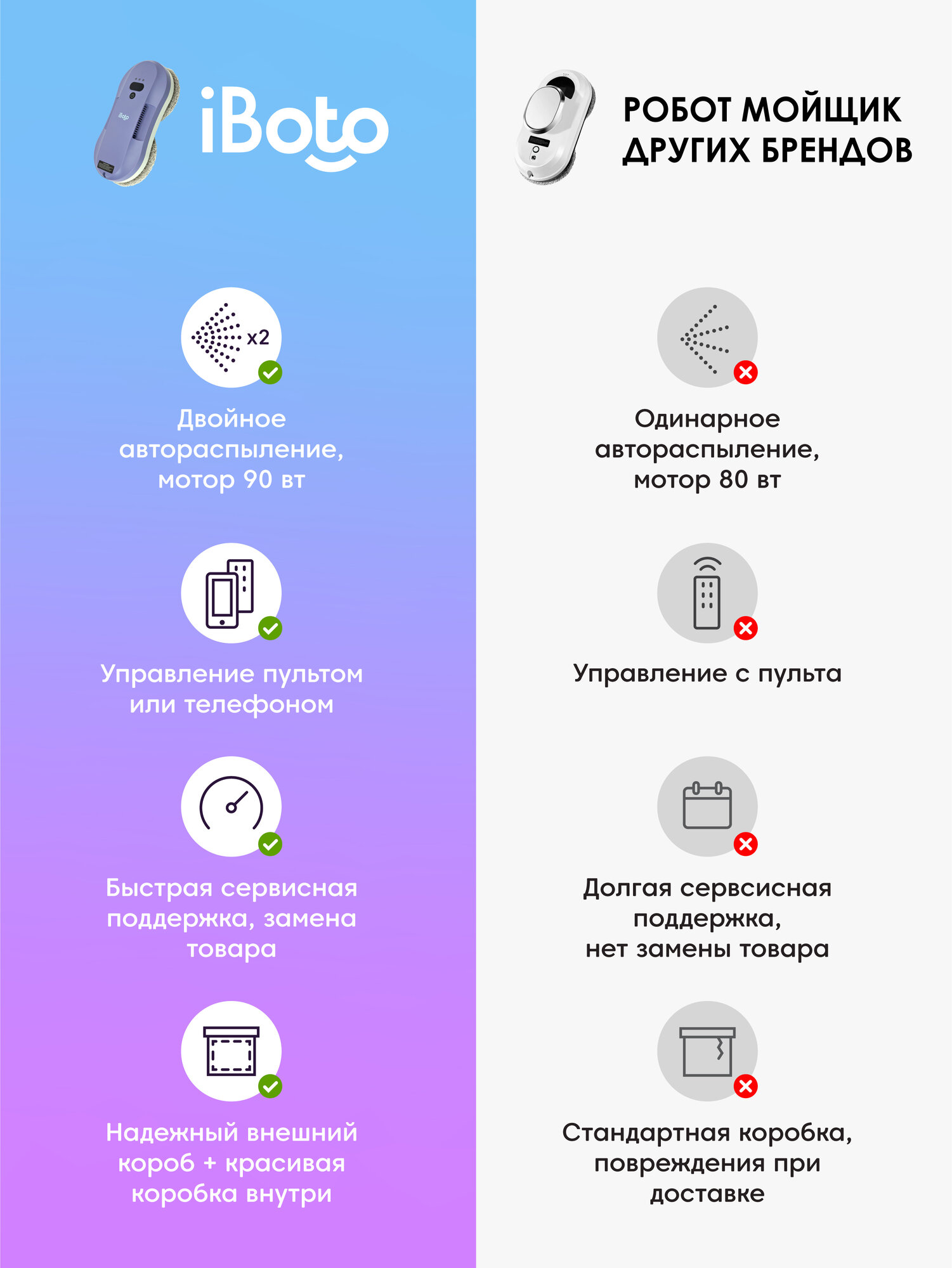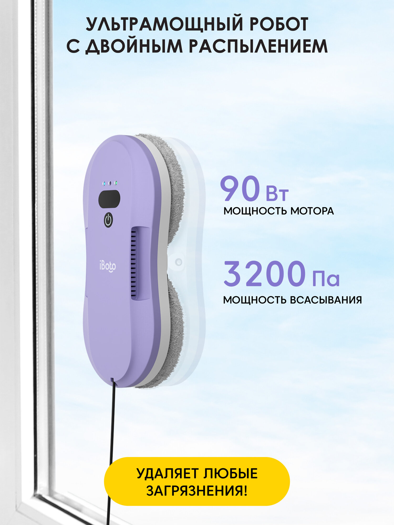 Умный Робот Мойщик окон с Двойным Автоматическим Распылением iBoto Win 395 от специализированного на робототехнике бренда iBoto – это Идеальный Робот Мойщик, чтобы экономить вам время и деньги на мытье окон, безопасно мыть любую вертикальную и горизонтальную поверхность в квартире или доме: окна, зеркала, стекло, плитку, кафель, фасад дома и многое другое, не оставляя разводов, не царапая и не повреждая поверхность! Робот стеклоочиститель будет прекрасным помощником в решении проблемы безопасного мытья окон любого размера на высоких этажах, сэкономит вам на клининге от 5000 в год!