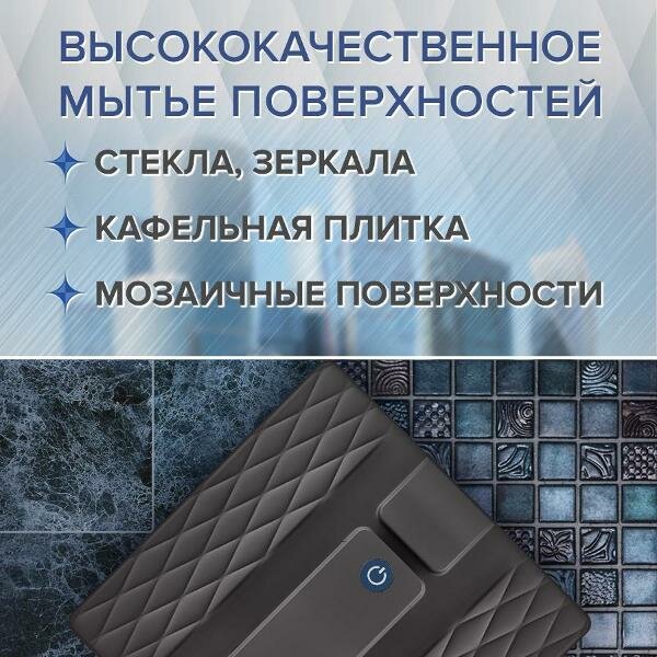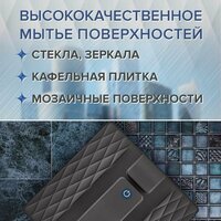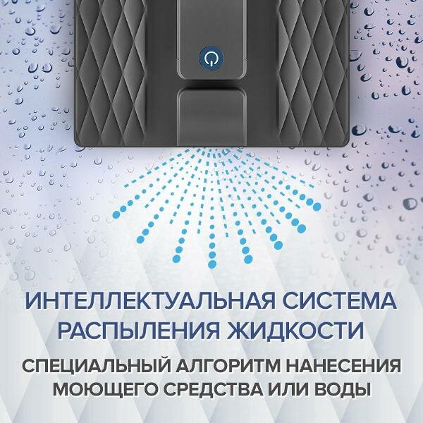 Робот-стеклоочиститель «Даджет» R200, темно-серый эффективно очищает окна, зеркала, кафельную плитку, мозаичные панно. Благодаря квадратной форме он качественно обрабатывает даже труднодоступные углы и участки около рам. Встроеная интеллектуальная система распыления жидкости. Уборка 1 м² занимает всего 3,5 минуты. Режимов работы три: «Автоматический», «Горизонтальное окно» и «Вертикальное окно», выбор параметров сопровождается звуковыми сигналами. За управление отвечает дистанционный пульт. Удаление загрязнений производится салфетками. Они выполнены из мягкого материала, который не поцарапает стекло и тщательно отполирует поверхность, не оставляя разводов. В основе — мощный бесщеточный двигатель. Прибор получает питание от электрической сети напряжением 220 В и подключается к розетке по кабелю длиной 4 м. Потребляемая мощность составляет 72 Вт, уровень шума при работе достигает 67 дБ. Устройство передвигается на силиконовых гусеницах, обладающих улучшенным сцеплением с поверхностью. Безопасность обеспечивается также надежным страховочным тросом с карабином и встроенным резервным литий-полимерным аккумулятором емкостью 500 мА*ч: если питание будет отключено, он предотвратит падение и позволит пылесосу завершить уборку в течение 10-15 минут. Корпус «Даджет» R100 выполнен из пластика, декорирован рельефным геометрическим орнаментом. Габариты робота: 23х35х10 см, вес — 1,95 кг. В комплекте — четыре салфетки.