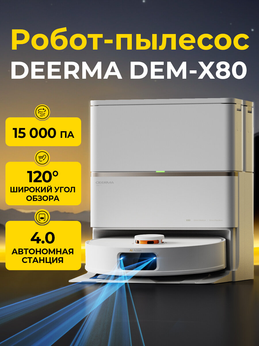 Робот-пылесос Deerma X80, Автономная станция, 15000 Па, влажная уборка, управление через Mijia, умный, для дома, Белый: сравнение цен, характеристики, фото, актуальное наличие и цены.