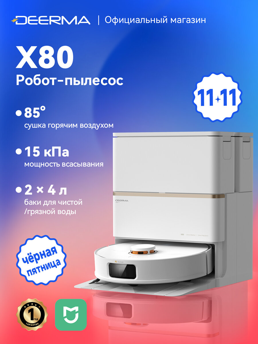 Купить Робот-пылесос Deerma X80, Автономная станция, 15000 Па, влажная уборка, управление через Mijia, умный, для дома, Белый с доставкой по всей России. Робот-пылесос Deerma X80, Автономная станция, 15000 Па, влажная уборка, управление через Mijia, умный, для дома, Белый: сравнение цен, характеристики, фото, актуальное наличие и цены.