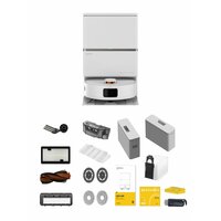 акселерометр, гироскоп, датчик TOF, датчик перепада высоты, емкость для воды в базе, емкость для чистящего средства в базе, индикатор заполнения пылесборника, лидар, мусоросборник в базе, мягкий бампер