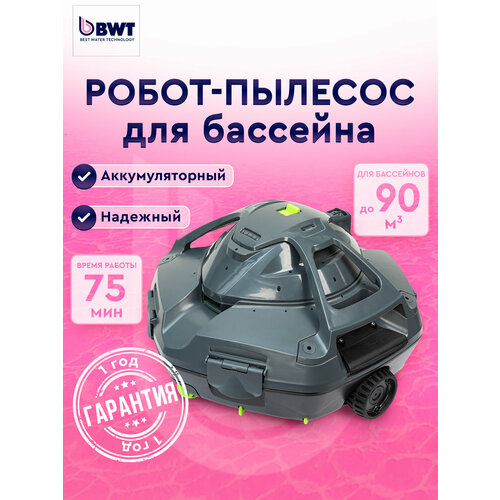 Беспроводной водный пылесос для бассейна BWT Essential ES500 работает за счет встроенного аккумулятора.