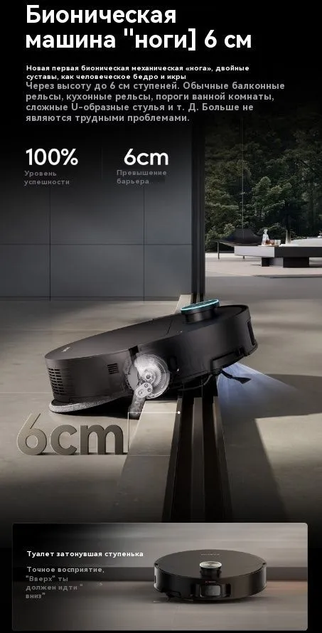 Dreame X50 Ultra — новейший флагманский робот-пылесос от компании Dreame, оснащенный инновационной системой подъема, позволяющей преодолевать небольшие ступеньки высотой до 6 см (около 2,36 дюйма). Уникальная технология ProLeap использует специальные рычаги, которые помогают устройству справляться с такими препятствиями, как провода, пороги и другие неровности.