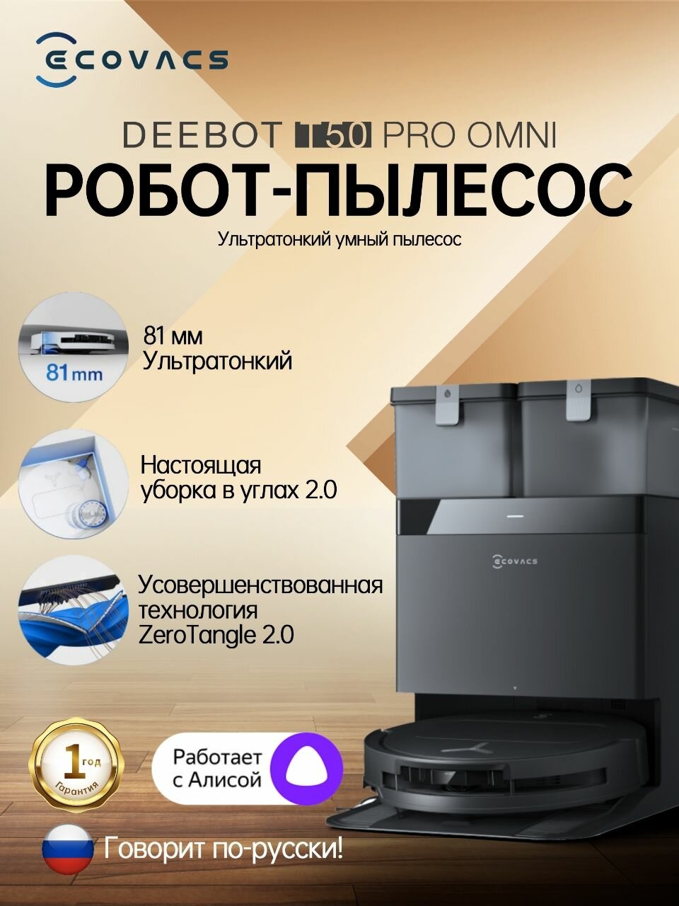 Робот-пылесос Ecovacs DEEBOT T50 PRO OMNI, цвет черный, RU-версия: сравнение цен, характеристики, фото, актуальное наличие и цены.