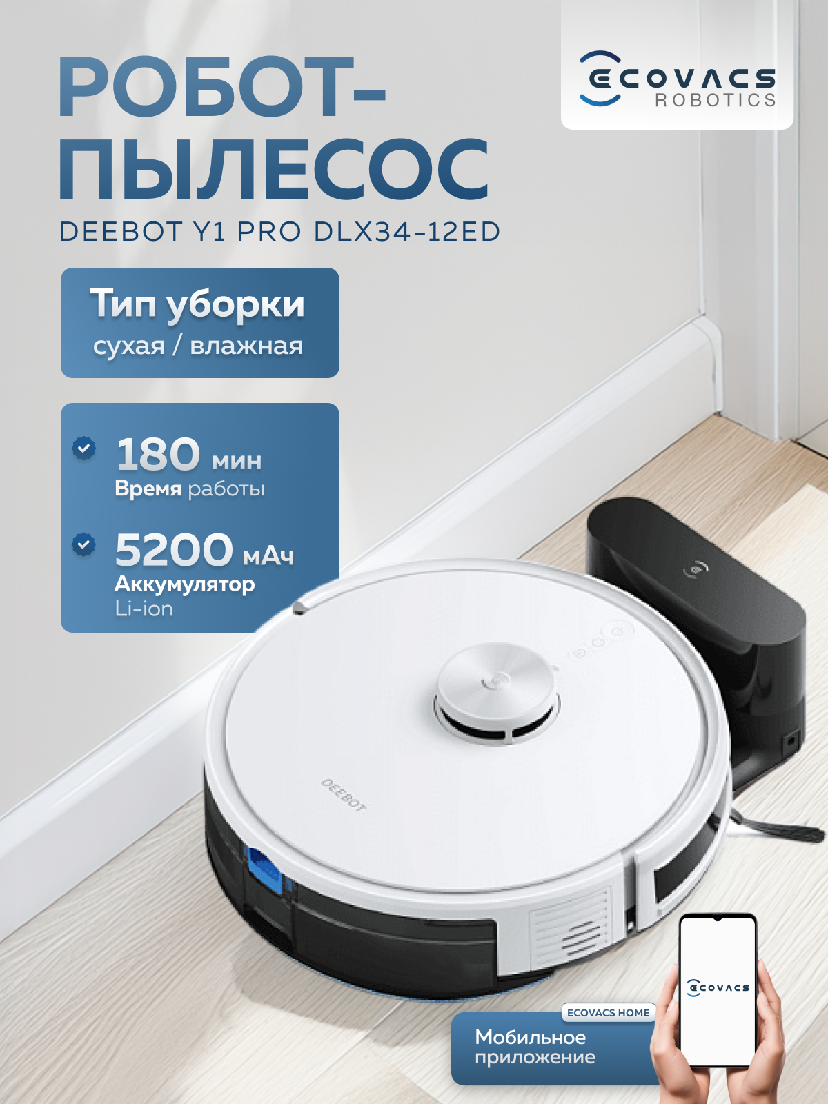 Робот-пылесос Ecovacs Deebot Y1 Pro DLX34-12ED, влажная и сухая уборка, управление со смартфона: сравнение цен, характеристики, фото, актуальное наличие и цены.
