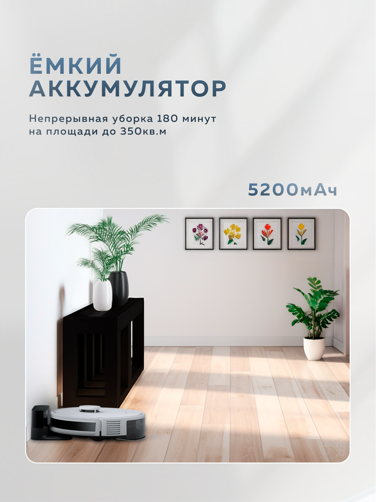 | Режимы | Y-образная траектория, быстрая уборка, движение вдоль стен, местная уборка, уборка по заданному маршруту |