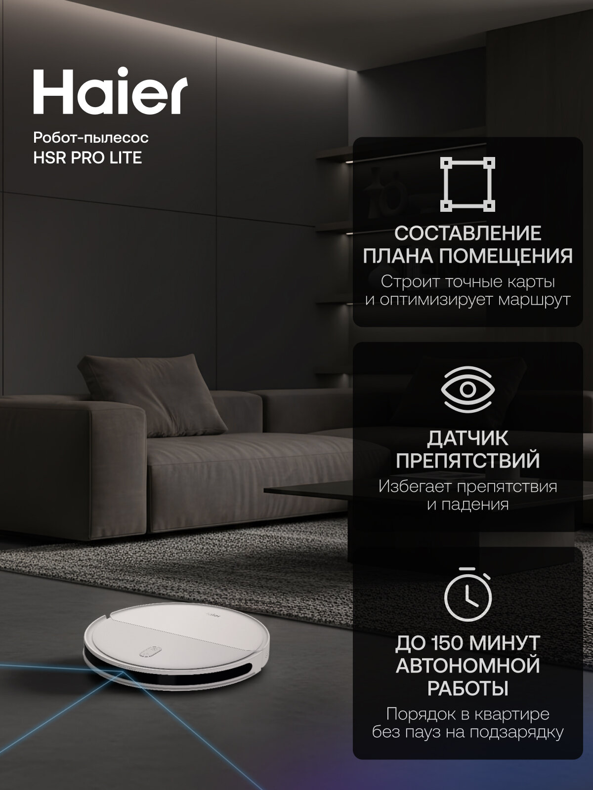 | Особенности конструкции | акселерометр, гироскоп, датчик TOF, датчик перепада высоты, дисплей, емкость для воды в базе, индикатор заполнения пылесборника, лидар, мусоросборник в базе, мягкий бампер |