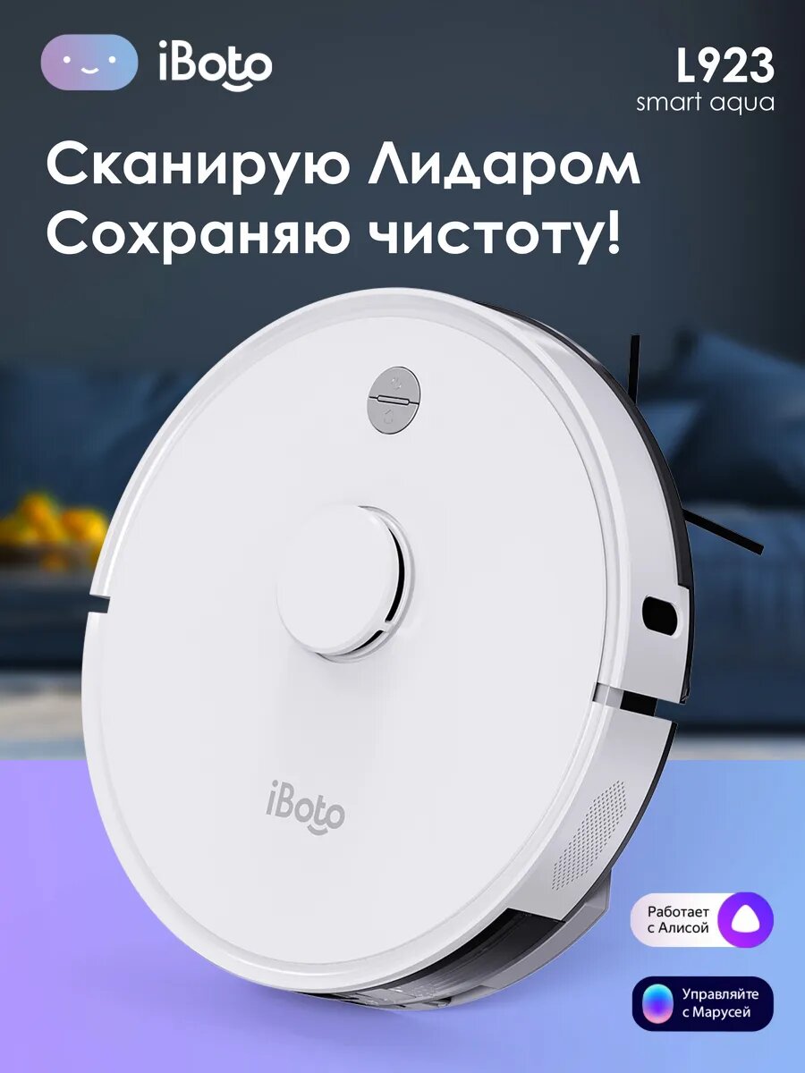 Робот-пылесос iBoto Smart L923, Лидар, автоувеличение мощности, управление голосом, приложение, Алиса: сравнение цен, характеристики, фото, актуальное наличие и цены.