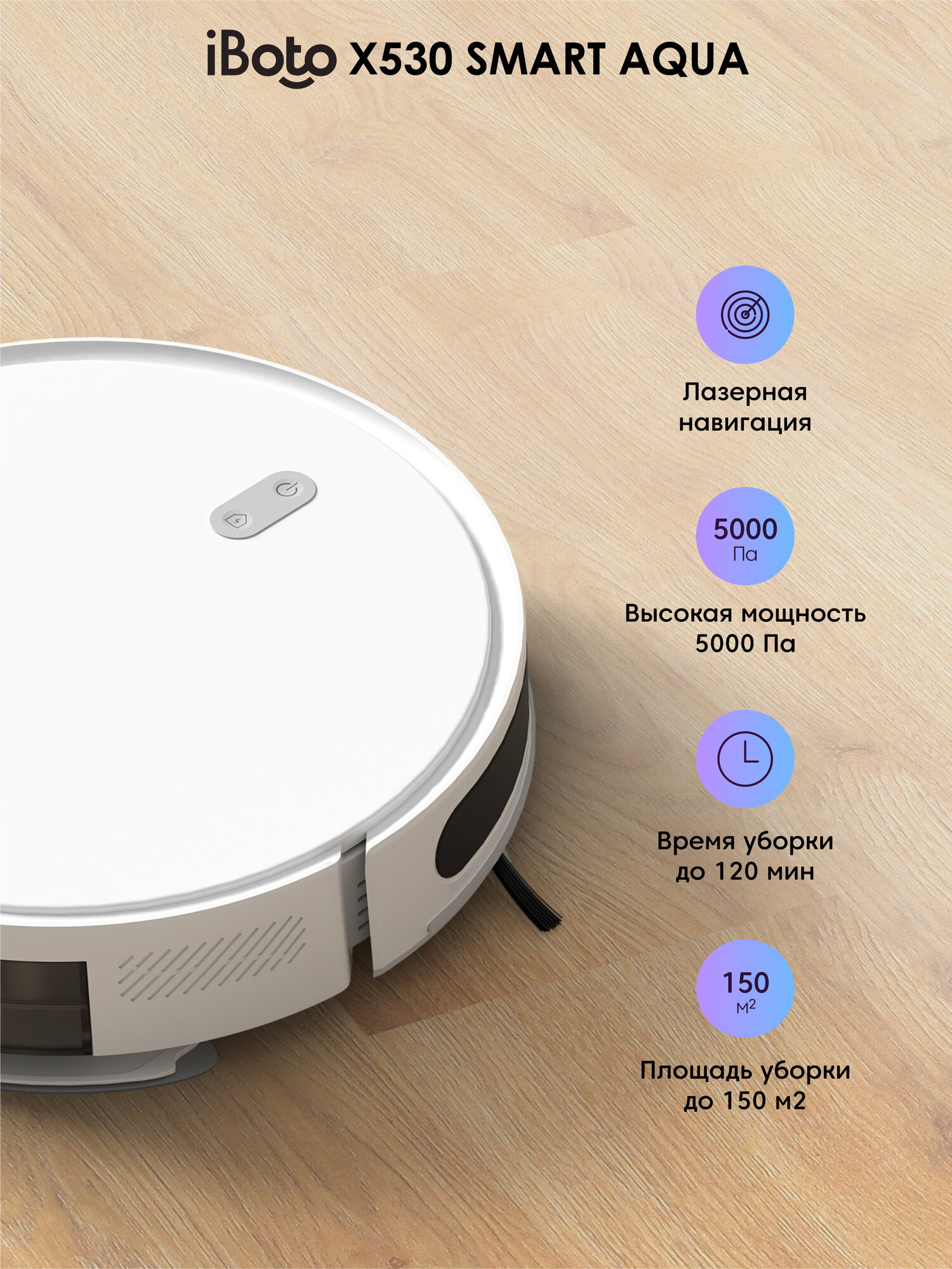 Робот пылесос iBoto X530, сухая и влажная уборка, Встроенный Лидар, 5000 Па, автоувеличение мощности, Алиса: сравнение цен, характеристики, фото, актуальное наличие и цены.