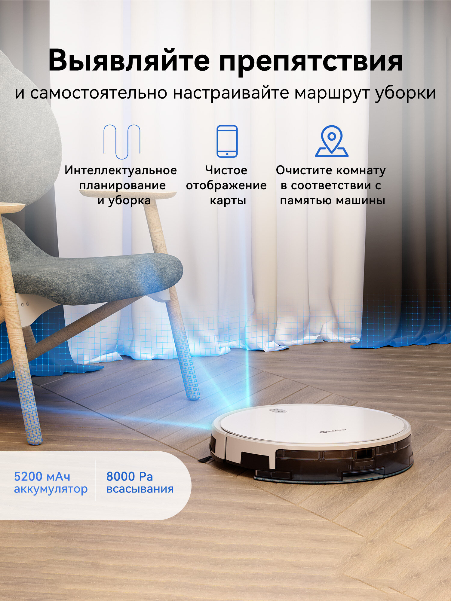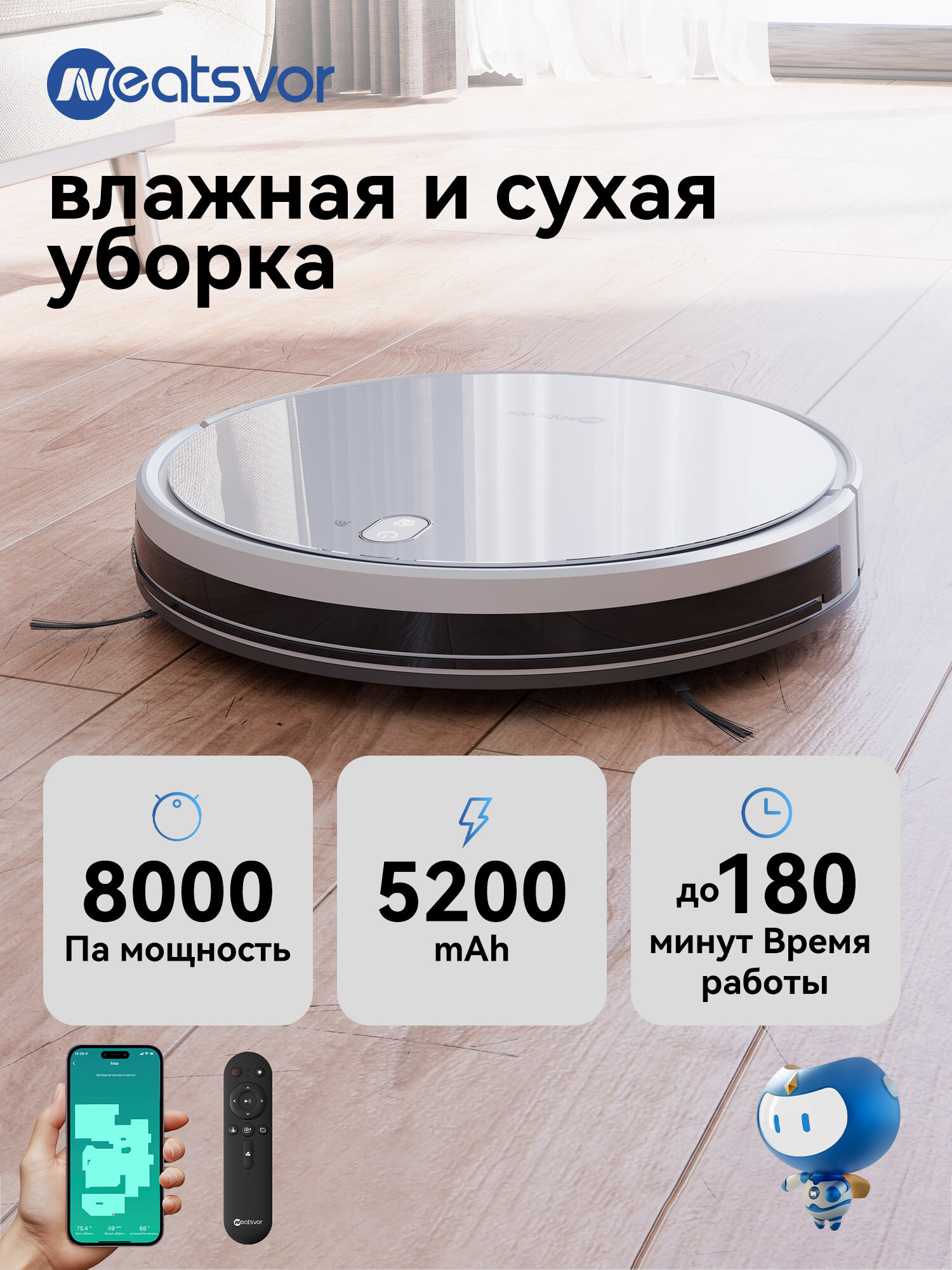 Робот-пылесос NEATSVOR X520RU,сухая и влажная уборка,Всасывание 8000 Па, аккумулятор 5200 мАч, белый: сравнение цен, характеристики, фото, актуальное наличие и цены.
