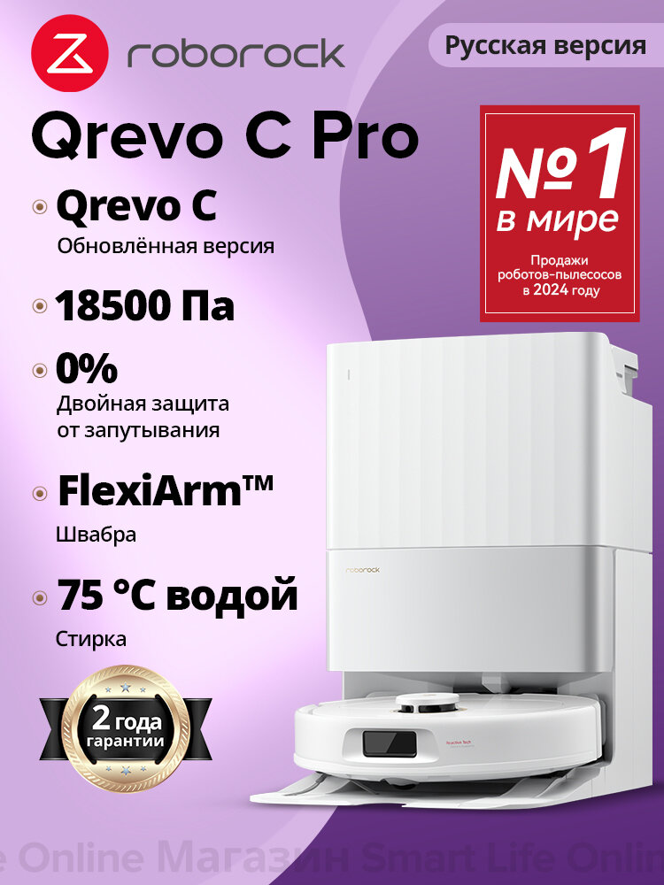 Робот-Пылесос Roborock Q revo C Pro (Русская Версия), Функция Влажной Уборки, Лидар, Qrevo C Улучшенная версия, Белый: сравнение цен, характеристики, фото, актуальное наличие и цены.