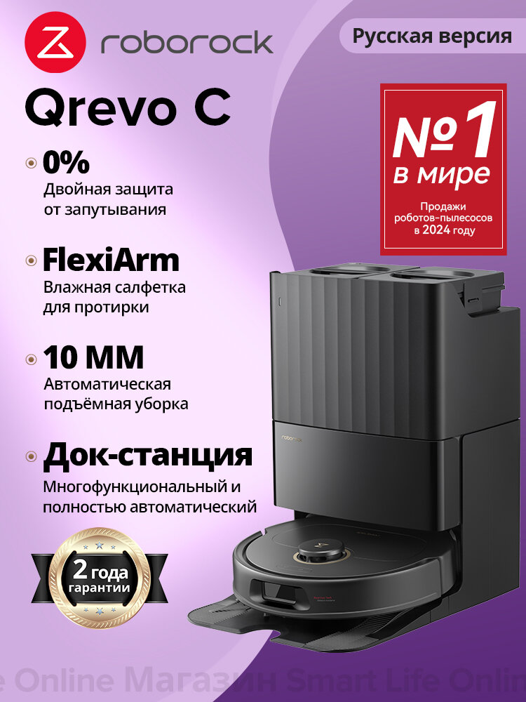 Робот-Пылесос Roborock Q revo C (Русская Версия), Функция Влажной Уборки, Управление Со Смартфона, Лидар, Чёрный: сравнение цен, характеристики, фото, актуальное наличие и цены.