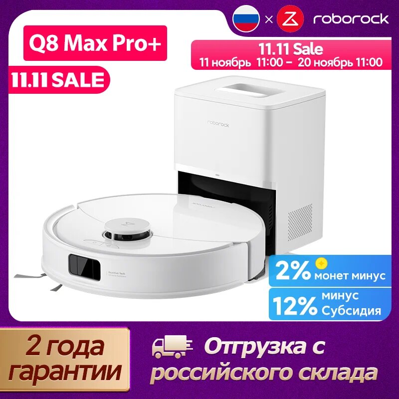 Купить Робот-пылесос Roborock Q8 Max, <500 Вт, беспроводной, сухая уборка, пылесборник, Roborock, Q8 Max, Белый, Робот-пылесос, <500 Вт, Пылесборник, Беспроводной, Сухая уборка с доставкой по всей России.