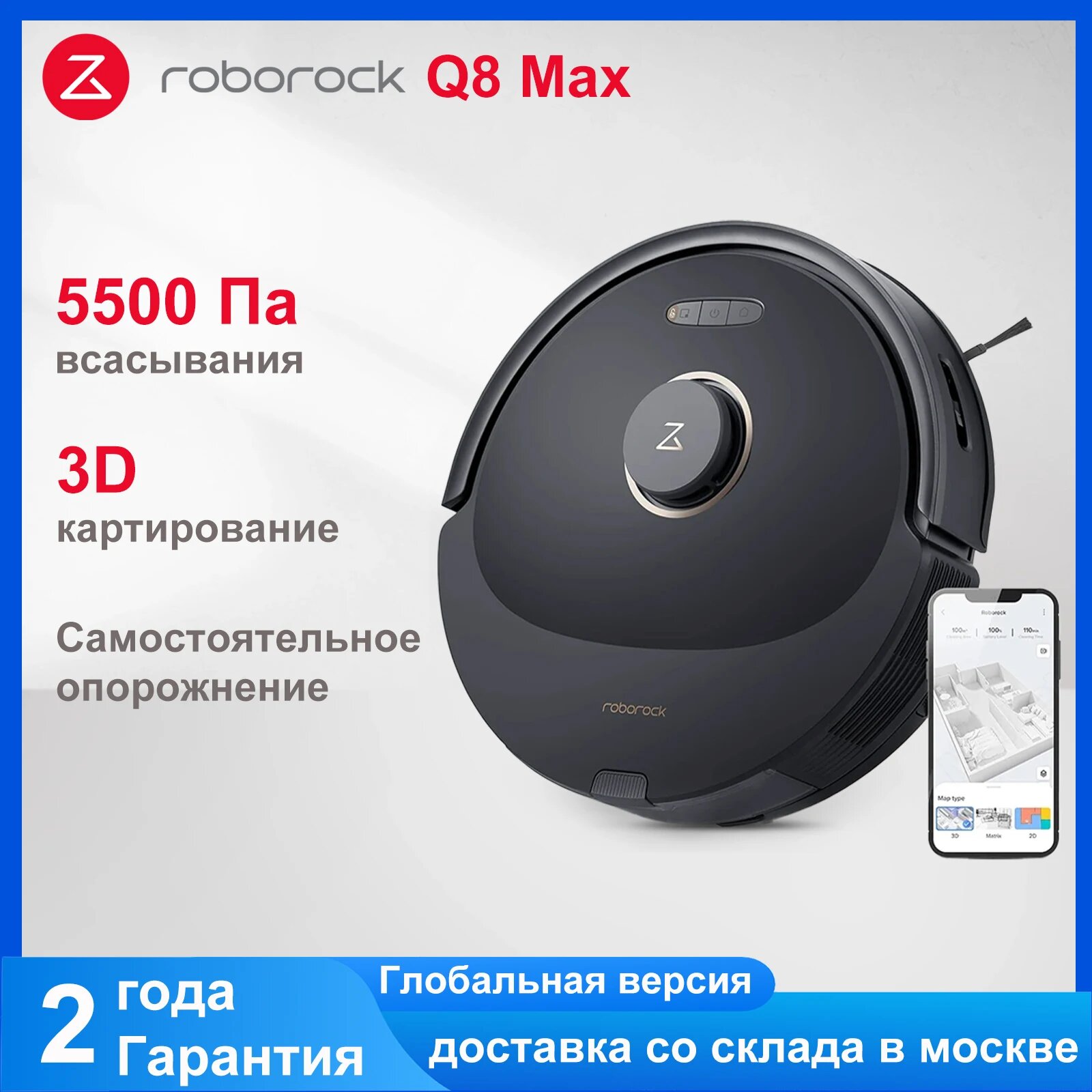Купить Робот-пылесос Roborock Q8 Max, <500 Вт, беспроводной, влажная уборка, пылесборник, Black Q8 Max, EU, Roborock, Q8 Max, Робот-пылесос, <500 Вт, Пылесборник, Беспроводной, Влажная уборка с доставкой по всей России.