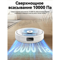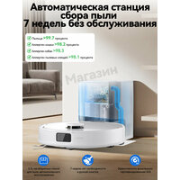 | Особенности конструкции | акселерометр, встроенные часы, гироскоп, датчик TOF, датчик перепада высоты, дисплей, емкость для воды в базе, индикатор заполнения пылесборника, лидар, мусоросборник в базе, мягкий бампер, подсветка дисплея |