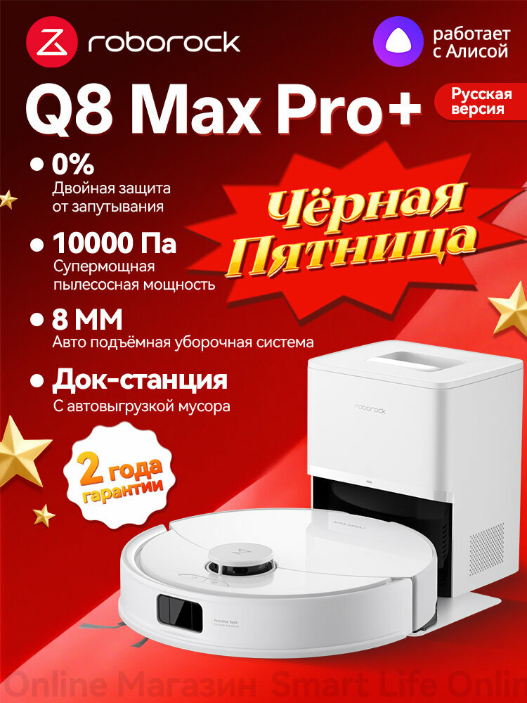 Купить Робот-пылесос Roborock Q8 Max Pro +(русская версия), сухая и влажная уборка, 0,5 л контейнер для воды, Белый с доставкой по всей России. Робот-пылесос Roborock Q8 Max Pro +(русская версия), сухая и влажная уборка, 0,5 л контейнер для воды, Белый: сравнение цен, характеристики, фото, актуальное наличие и цены.