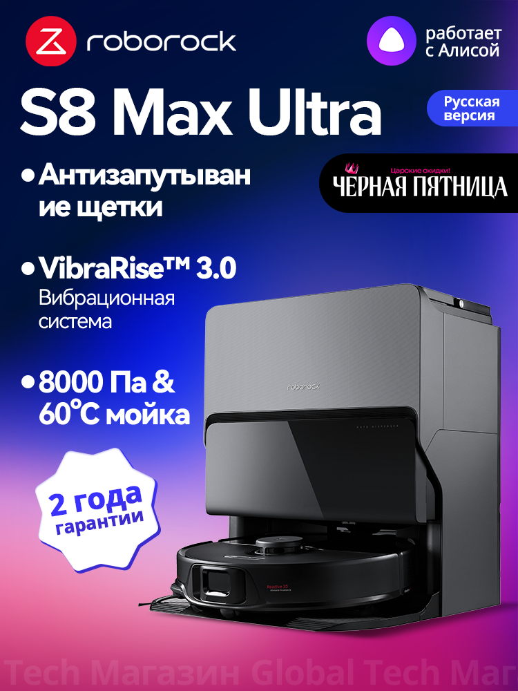 Купить Робот-пылесос Roborock S8 Max Ultra(RU Версия)чёрый, с инновационными технологиями и авто очисткой, управляемый голосом с доставкой по всей России.