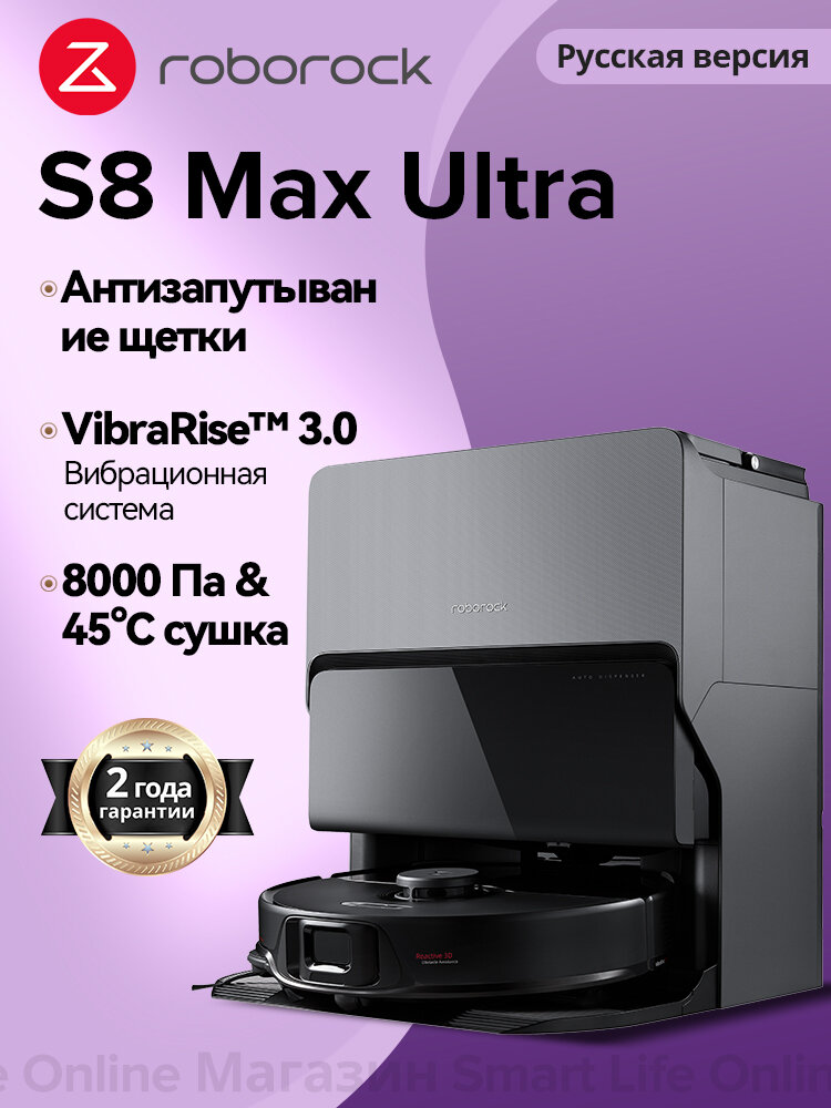 Робот-Пылесос Roborock S8 Max Ultra (Русская Версия), Управление Со Смартфона, Влажная/Сухая Уборка, Чёрный: сравнение цен, характеристики, фото, актуальное наличие и цены.