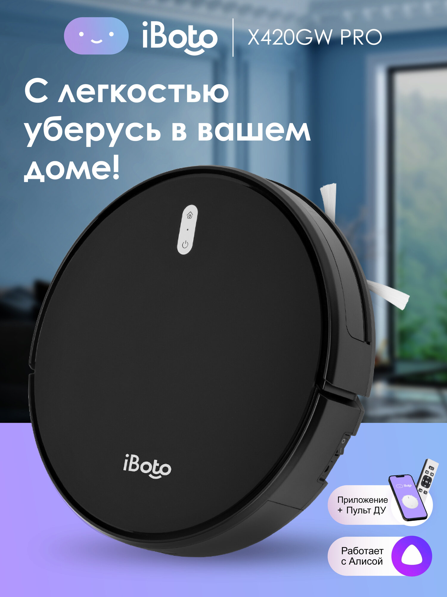 Робот-пылесос с влажной и сухой уборкой iBoto Smart Х420GW PRO, управление голосом, пульт ДУ, приложение, Алиса, Маруся: сравнение цен, характеристики, фото, актуальное наличие и цены.