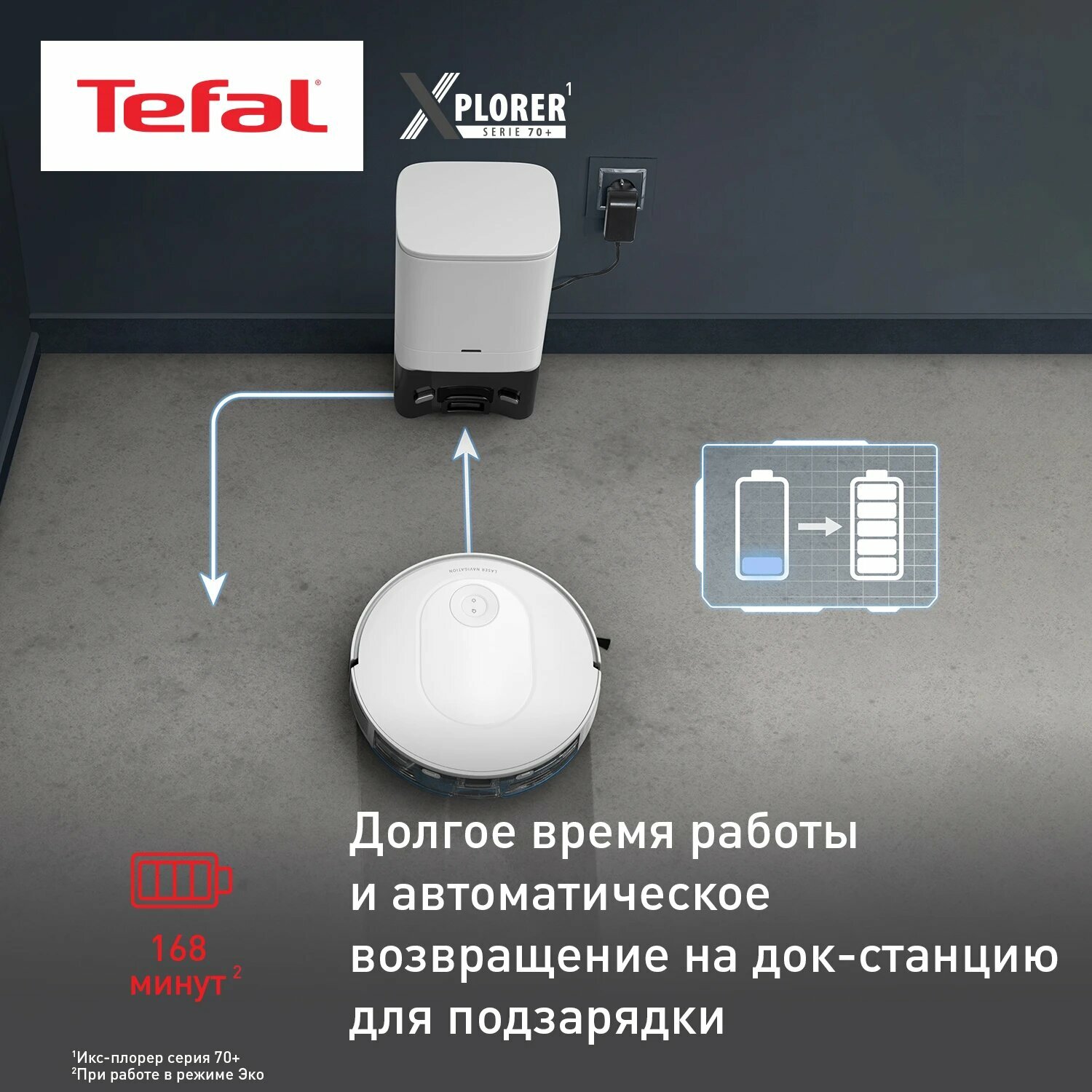 Робот-пылесос Tefal RG8497WH обладает функцией построения карты помещения. Это позволяет устройству ориентироваться в пространстве и выполнять уборку наиболее оптимальным образом.