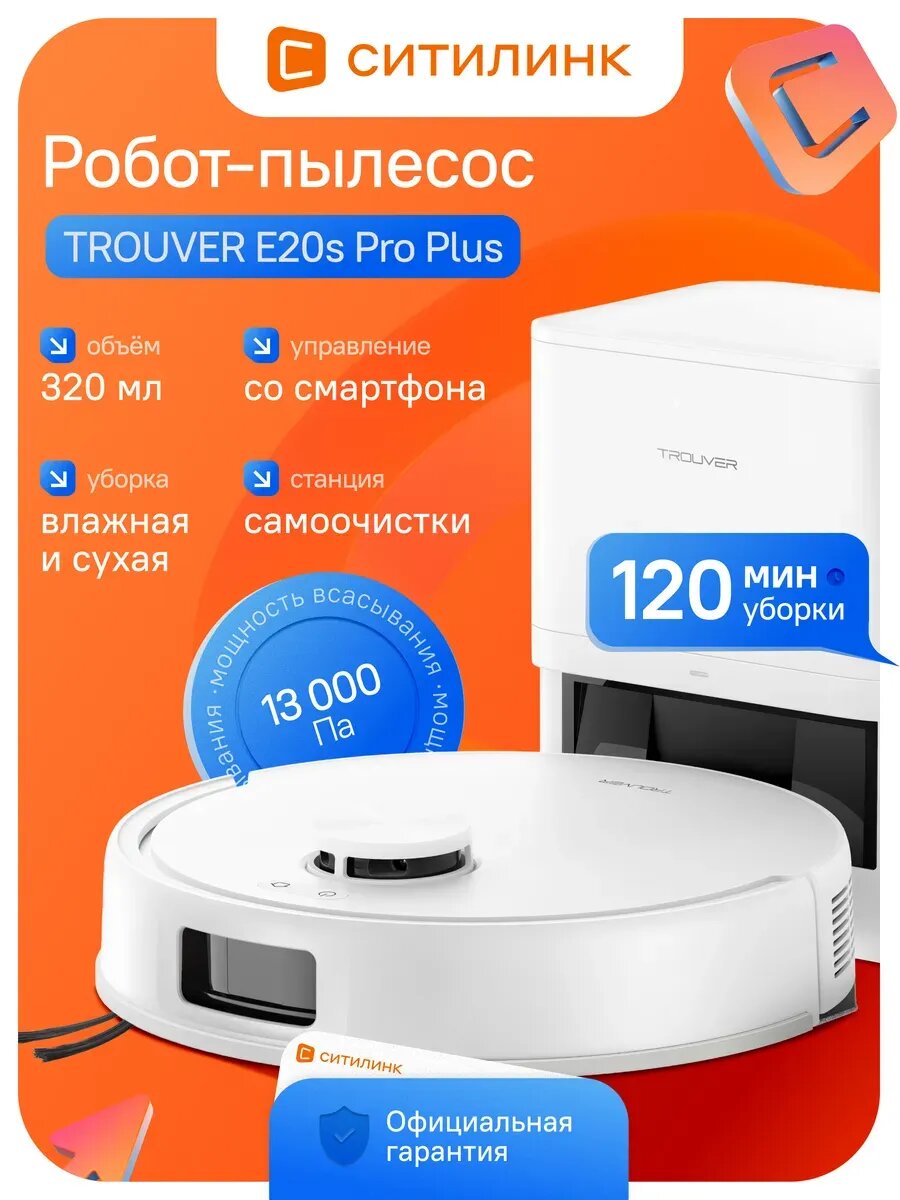 TROUVER E20s Pro Plus — это робот пылесос со станцией самоочистки, созданный для максимально эффективной и автономной уборки вашего дома. Этот умный робот пылесос объединяет в себе высокую мощность всасывания и передовые навигационные технологии, полностью освобождая вас от рутинных забот о чистоте.
