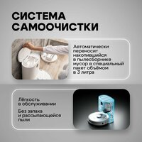 | Дополнительная информация | управление через приложение и при помощи голосовых помощников, лазерная навигационная система LDS 4.0, док-станция оснащена информативным дисплеем с сенсорным управлением (уведомление о заполнении контейнера, также приходит на сопряженный смартфон) |