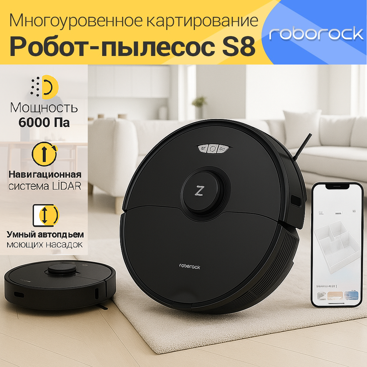 Робот-пылесос xiaomi Roborock S8, Чёрный, автоматическая установка на зарядку, Wi-Fi, Bluetooth(Xiaomi APP): сравнение цен, характеристики, фото, актуальное наличие и цены.