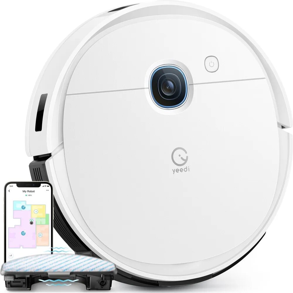Устройство С вибрационной машинойробот-пылесос YEEDI Vac 2 Pro демонстрирует удобство в эксплуатации. Он оснащается несколькими датчиками и камерой на корпусе. Его можно «попросить» совершить сухую уборку или промыть полы. Рядом с камерой располагается единственная кнопка для запуска уборки. С помощью фирменного мобильного приложения робот-пылесос убирает конкретный участок комнаты или возвращается самостоятельно на базу. компактная шайбавысота модели составляет 7,7 см. Её классический дизайн выполнен в чёрно-белом цвете, поэтому вписывается в любой комнате, кладовой, гардеробной. Стильный цилиндр диаметром 340 мм гармонично сочетается с современными стилями интерьера: лофт, фьюжн, техно, хай-тек. Благодаря толщине всего 75 мм пылесос Yeedi проходит под любой мебелью: диванами, креслами, кроватями и тумбами. Он эффективно убирает помещения площадью 220 кв. м на одном заряде. всем рулит оптическая навигациямодель Yeedi точно распознаёт препятствия благодаря оптической системе VSlam. Её объектив виден в верхней части корпуса. Для эффективной работы пылесоса необходимо максимально очищать поле для генерации карт, избегать препятствий, следить за хорошей освещённостью. Набор датчиков в корпусе предотвращает ряд неисправностей. Он защищает прибор от случайных ударов, распознаёт ковры, исключает царапины при столкновениях. При обнаружении на пути ковров, пылесос автоматически увеличивает мощность. Отличная автономностьмодель Yeedi Vac 2 Pro развивает мощность всасывания до 3000 Па, поэтому гарантирует эффективную ежедневную уборку полов. Большой нижний валик и боковая вращающаяся щётка устраняют любые виды загрязнений на твёрдых поверхностях и в труднодоступных местах. Батарея на 5200 мАч заряжает пылесос в течение 6 часов. Когда батарея разряжена при следующем включении «умный» прибор начинает работу там, где остановился. мытьё половустройство Yeedi обладает функцией «Швабра». Для её активации необходимо установить соответствующий аксессуар — резервуар для воды объёмом 180 мл. Благодаря вибрирующей тряпке выполняется эффективная очистка пола с колебаниями до 480 раз в минуту. С её помощью устраняются разводы, пятна от продуктов, чернил и различных жидкостей. удалённое управлениеблагодаря фирменному мобильному приложению Yeedi получается мгновенно запускать и завершать уборку комнат, выбирать уровень мощности и расхода воды, а также определять последовательность цикла. Посредством модуля Wi-Fi настраивается и реализуется ежедневный график уборки с датой и временем, выбираются функции «Не беспокоить», помощь голосового помощника, сохраняются истории проведенных уборок. Преимущества: функция определения и обхода препятствий 3 см в высоту; наличие вместительного пылесборника объёмом 420 мл; фильтр HEPA надолго сохраняет форму и функционал; набор стандартных датчиков — защитные, для распознавания ковров, противоударные; двигатель мощностью 1000 Вт полностью опорожняет робот-пылесоса, за исключением больших остатков; самоопорожняющийся механизм сокращает объёмы техобслуживания; фирменная утилита доступна для девайсов на базе ОС Android что iOS. комплектация: робот-пылесос Yeedy Vac 2 Pro; зарядная база с европейской вилкой и переходником; подметальная щётка; тряпка для мытья пола; руководство пользователя. HEPA-фильтресть Wi-Fiесть Внесение запретных зонда 