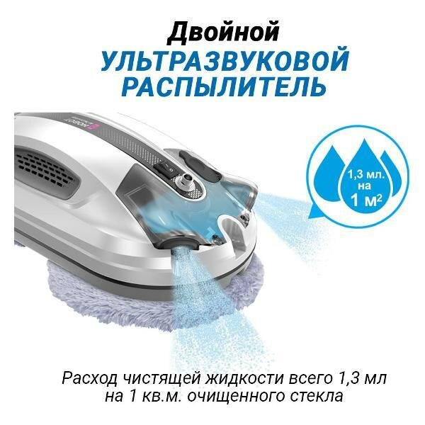 Робот-стеклоочиститель Hobot-R3 оборудован двойным ультразвуковым модулем «Ultrasonic». С помощью него робот распыляет жидкость в виде тумана, что позволяет эффективно очищать загрязненную поверхность. Управляется устройство с помощью пульта, смартфона и с кнопки на корпусе изделия. • Инверторный двигатель Устройство оснащено двигателем японского производства. Прибор плавно запускается и за счет металлической крыльчатки не шумно работает. • Режимы уборки Для очистки стекол предусмотрены четыре автоматические программы. Есть возможность управлять прибором в ручном режиме. Для этого используются четыре команды. Также можно регулировать периодичность распыления жидкости или отключать распыление воды. • Работа стеклоочистителя Перед запуском Hobot тестирует свои функции и датчики для максимальной производительности. Чистящий блок робота — это вращающиеся диски, на которые крепятся салфетки из микрофибры. При уборке устройство поднимается в верхнюю часть поверхности и спускается вниз, очищая всю её площадь. • Обновление прошивки Робот обновляется «по воздуху» с помощью смартфона без проводов. • Озвучка на русском языке В устройстве есть возможность выбора озвучки на русском языке. Также можно заменить предустановленные голосовые сообщения на персональные. • Безопасность Робот крепко держится на стекле. При перебое с электричеством включается источник бесперебойного питания, и устройство работает еще 20 минут. Для непредвиденных ситуаций предусмотрен страховочный трос.