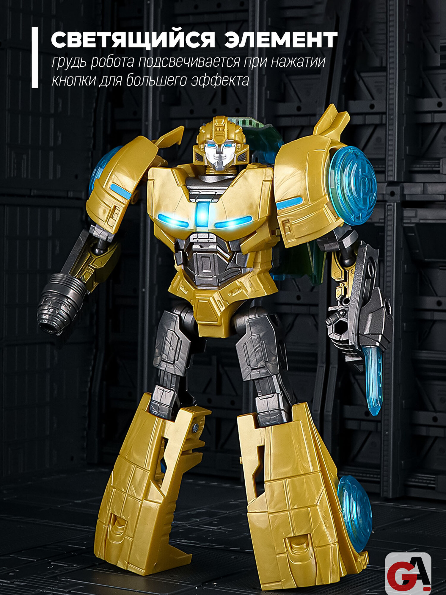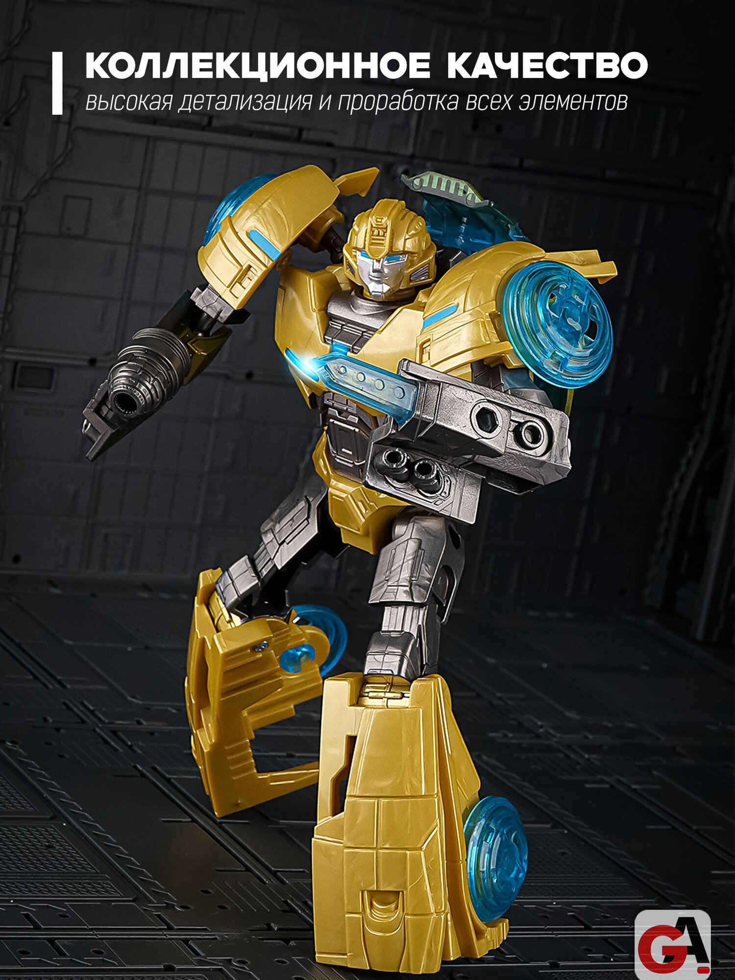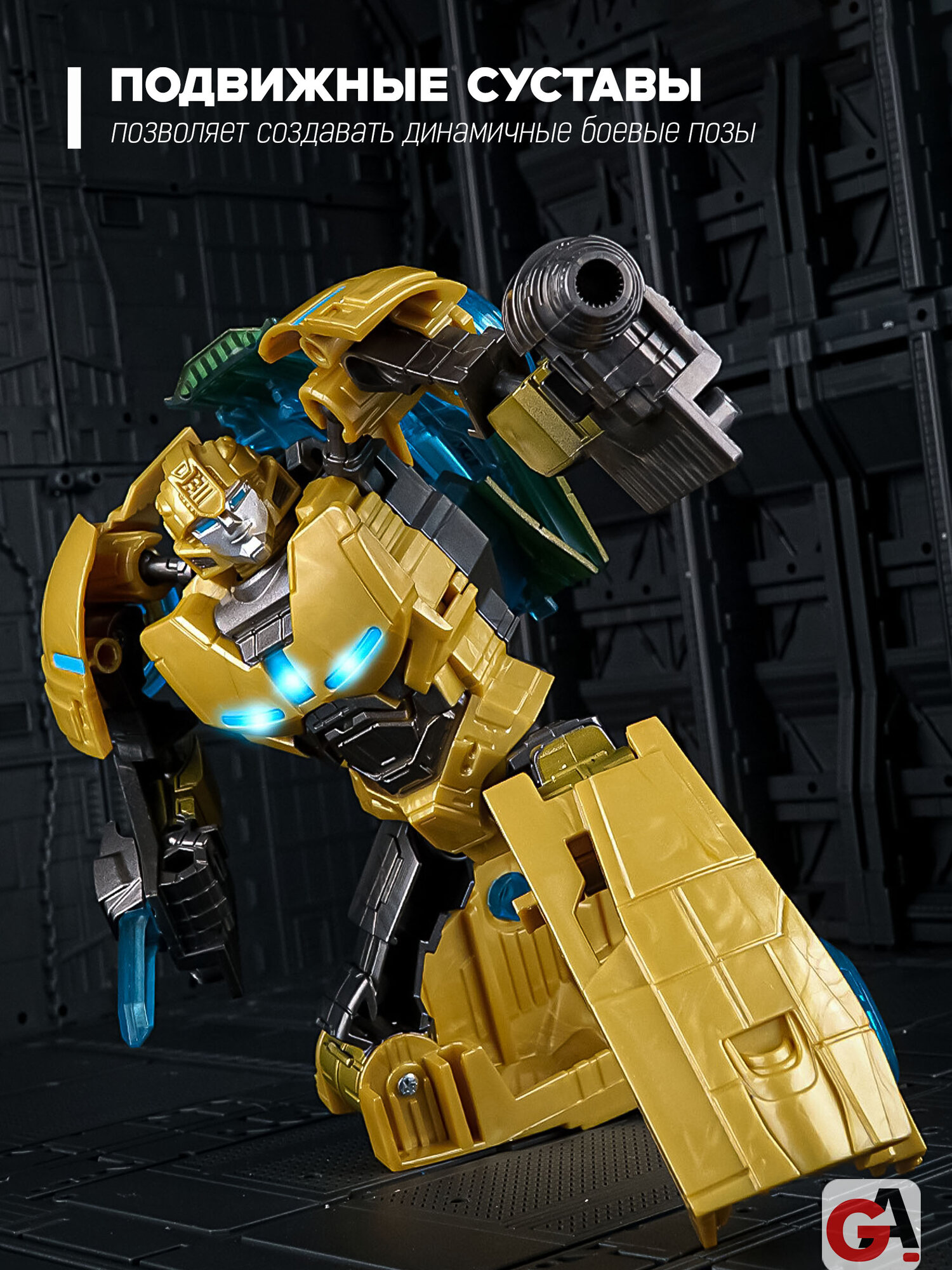 Фигурка оснащена светящимся элементом в области груди, который придает ей еще больше сходства с персонажем из фильмов и комиксов. Этот Бамблби станет желанным приобретением для коллекционеров и поклонников франшизы Transformers.