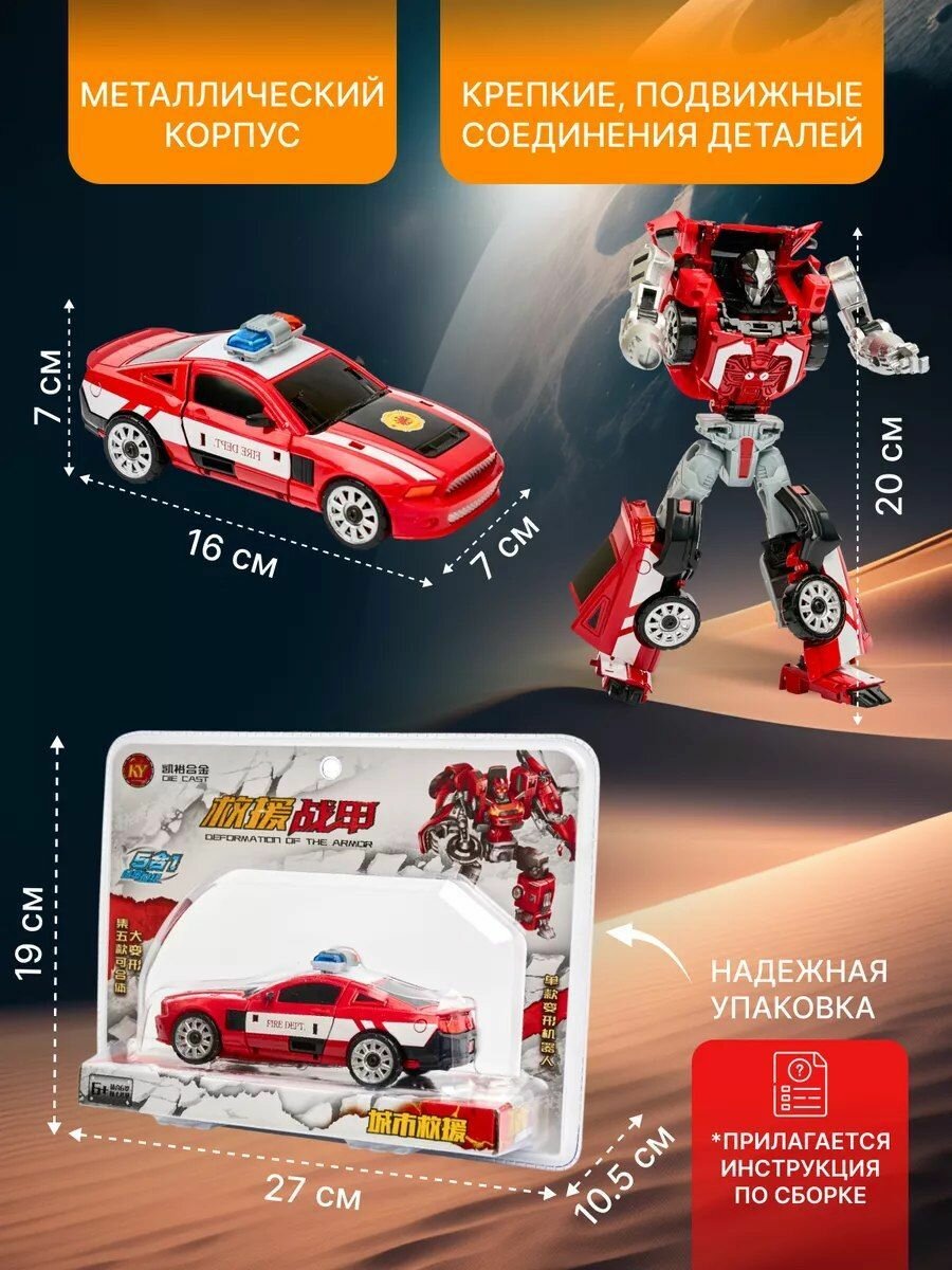 Трансформер выполнен из качественного металла, что обеспечивает его долговечность и надежность в использовании. Игрушка имеет яркий красный цвет и интересные детали, которые привлекут внимание ребенка и позволят ему погрузиться в мир захватывающих приключений.