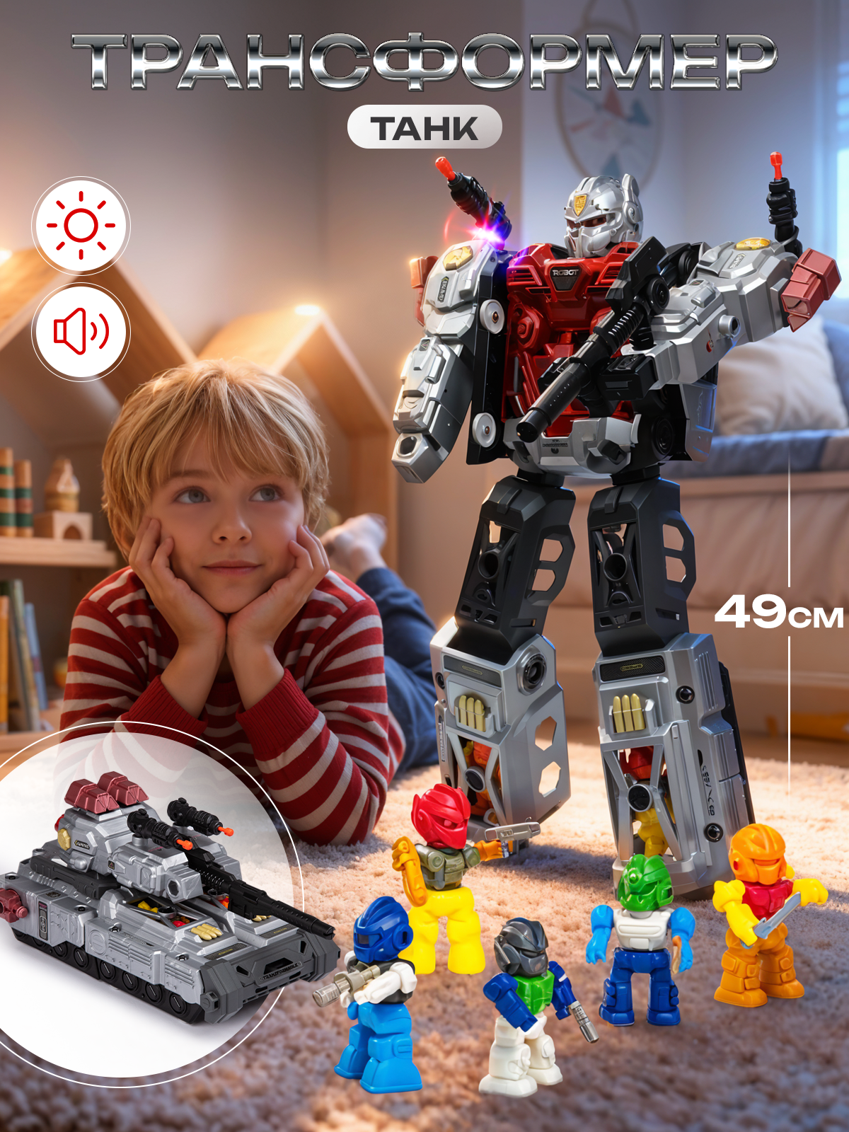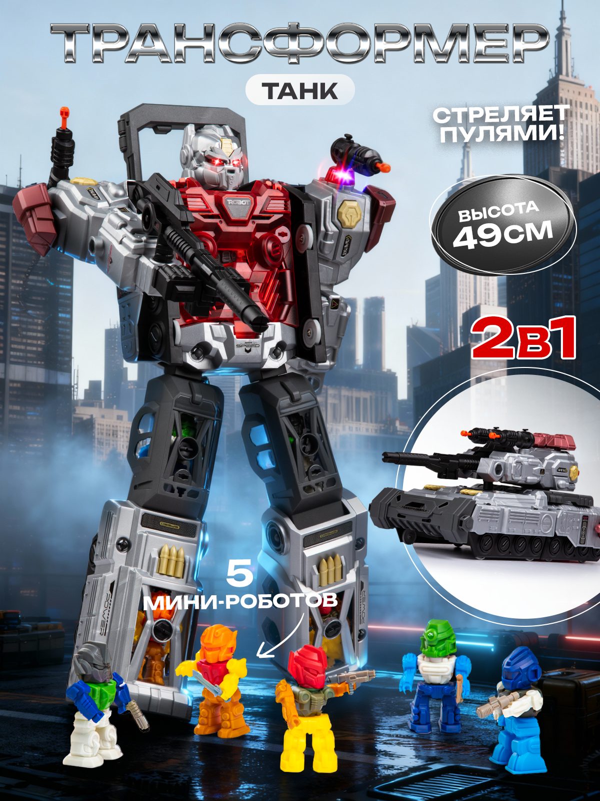 Купить Робот трансформер танк и 5 мини-роботов, стреляет пулями, высота 49 см, со светом и звуком, BestLike с доставкой по всей России. Робот трансформер танк и 5 мини-роботов, стреляет пулями, высота 49 см, со светом и звуком, BestLike: сравнение цен, характеристики, фото, актуальное наличие и цены.