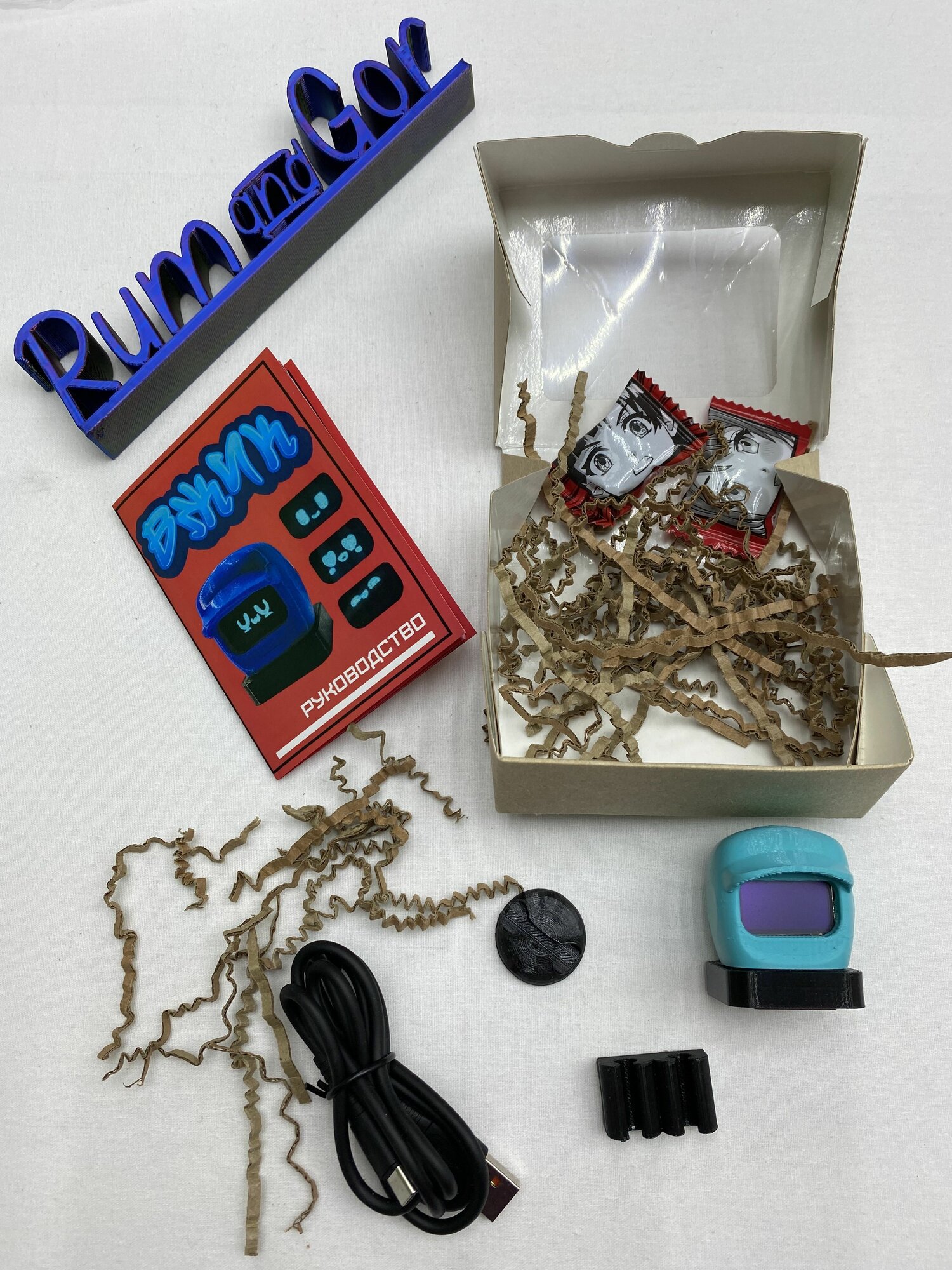 В комплекте идут сам робот, провод type-c, клипсы для провода -2шт.