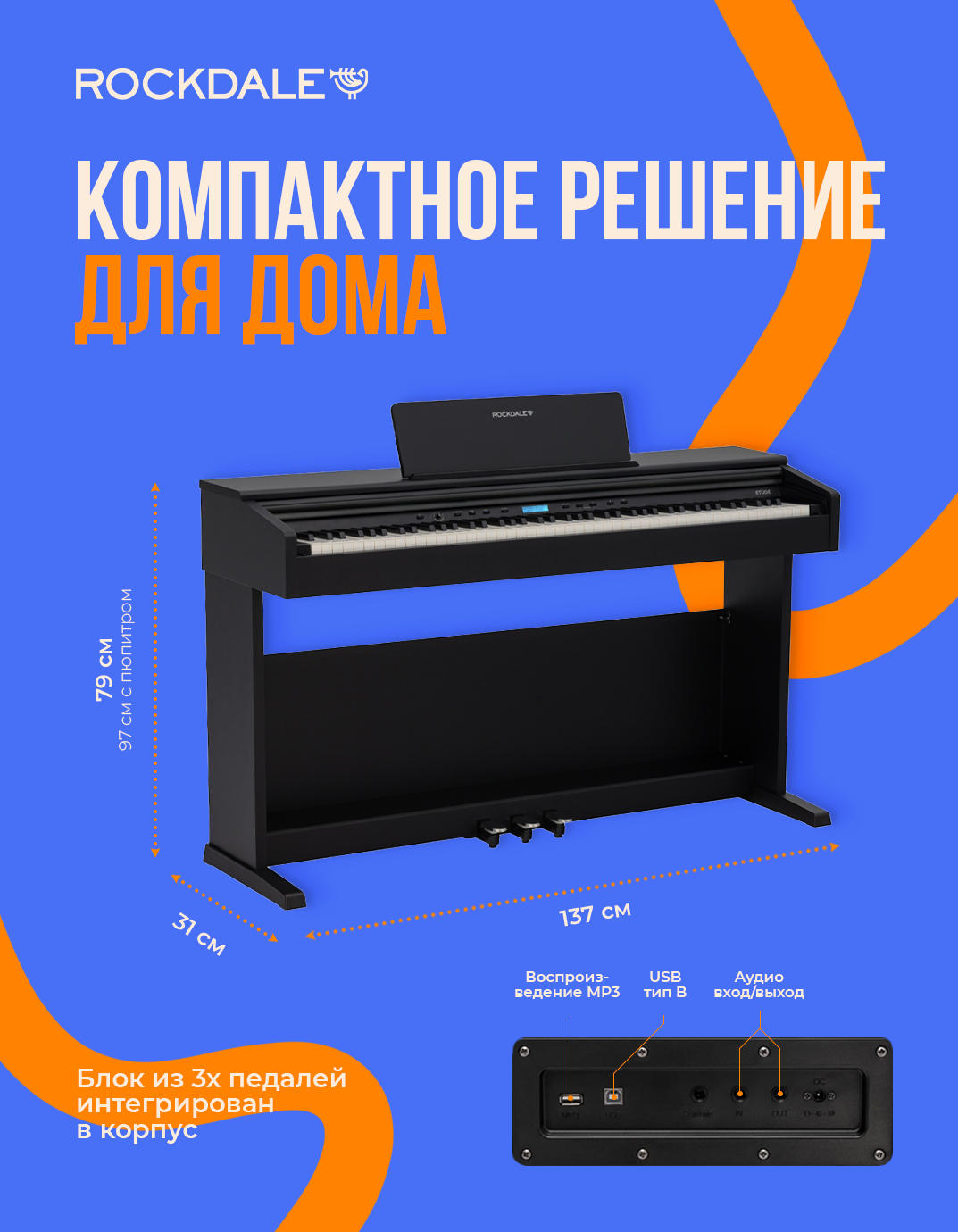 Кабинетное цифровое фортепиано Rockdale ETUDE 256 с градуированной молоточковой клавиатурой (молоточковая система Advanced Hammer Action), современным звуковым процессором ( 256 голосов полифонии), 238 тембрами и 200 стилями аккомпанемента, подойдет под любые задачи - в качестве первого инструмента для знакомства с музыкой и занятий по классу фортепиано, помощника для музыкальных развлечений в кругу семьи и друзей, а также для реализации творческих идей и создания собственных музыкальных композиций.