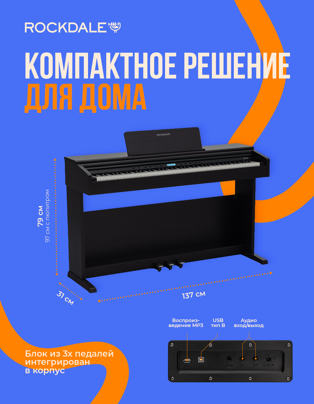 Кабинетное цифровое фортепиано Rockdale ETUDE 256 с градуированной молоточковой клавиатурой (молоточковая система Advanced Hammer Action), современным звуковым процессором ( 256 голосов полифонии), 238 тембрами и 200 стилями аккомпанемента, подойдет под любые задачи - в качестве первого инструмента для знакомства с музыкой и занятий по классу фортепиано, помощника для музыкальных развлечений в кругу семьи и друзей, а также для реализации творческих идей и создания собственных музыкальных композиций. Габариты: Ш х Г х В (см): 137 х 42 х 84.5 (98*) * - с пюпитром