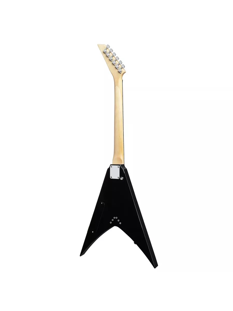 ROCKET E-2 BK Электрогитара Arrow с V-образным корпусом, который выполнен в виде стрелы (или Flying V), оснащена двумя хамбакерами и статичным бриджем. Она подходит для игры с различными эффектами и отличаются мощным, четким звучанием. Инструменты с такой формой корпуса предпочитают гитаристы, играющие в стилях heavy и thrash metal. Одним из ярких примеров является Кирк Хэммет (Metallica). Тип корпуса Arrow (Стрела) Материал корпуса Ольха Материал грифа - клен Накладка на гриф - палисандр Мензура: 25,5" (648 мм) Бридж: Tune-o-Matic Крепление струн: сквозное Крепления грифа: на болтах Количество ладов - 24 Количество струн - 6 Звукосниматели: H + H (хамбакер -2 шт) Регулировки: 1 тон, 1 громкость. 3-позиционный переключатель Цвет - черный Цвет фурнитуры: хром