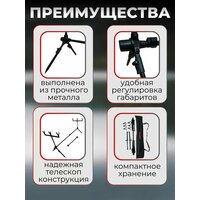 Rod-Pod это многофункциональная подставка сразу для 3 удилищ. Свое применение Rod-Pod нашел в карповой ловле и на фидер. На Rod-Pod можно легко поставить от 1 до 3 удилищ, очень просто прикрутить сигнализатор клева и наслаждаться рыбалкой и природой в ожидании поклевки. Рыболову не нужно тратить время на вкручивание нескольких подставок в твердый грунт, а после рыбалки вымывать их от грязи. Род под для рыбалки легко собирается, надежная металлопластиковая фурнитура прослужит Вам долгие годы. Комплектуется текстильным мешком-чехлом. Длина данного род пода для рыбалки в сложенном виде нижней струбцины 75 см. С разложенной нижней телескопической струбциной 125 см. Высота род-пода стационарная 50 см. Максимальная высота с выдвижными регулируемыми ножками 70 см. Ширина в стандартном виде с не раздвинутыми регулируемыми ножками 35 см. Ширина максимальная с выдвижными регулируемыми ножками 55 см. Буз-бар 38 см на три удилища. В комплекте 3 задних рогатки и 3 передних. При желании выкручиваются и устанавливаются сигнализаторы в стандартные классические места.