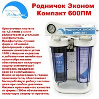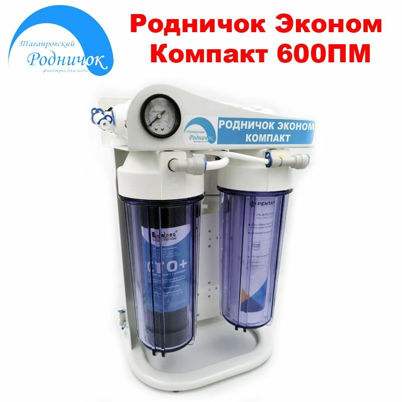 Система для очистки воды Родничок Эконом Компакт с мембраной Vontron 3012 600GPD используется для очистки водопроводной воды или воды из скважин (солесодержанием 500-1000ррм) методом обратного осмоса, а это означает: