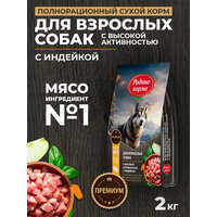 Родные корма 2 кг полнорационный сухой корм для взрослых собак с высокой активностью с индейкой