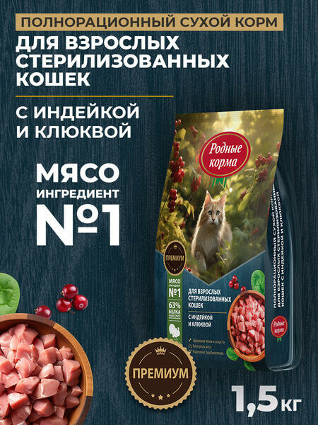Купить Родные корма 3 шт по 1,5 кг полнорационный, сухой корм для взрослых стерилизованных и кастрированных котов, кошек с индейкой и клюквой с доставкой по всей России. Родные корма 3 шт по 1,5 кг полнорационный, сухой корм для взрослых стерилизованных и кастрированных котов, кошек с индейкой и клюквой: сравнение цен, характеристики, фото, актуальное наличие и цены.
