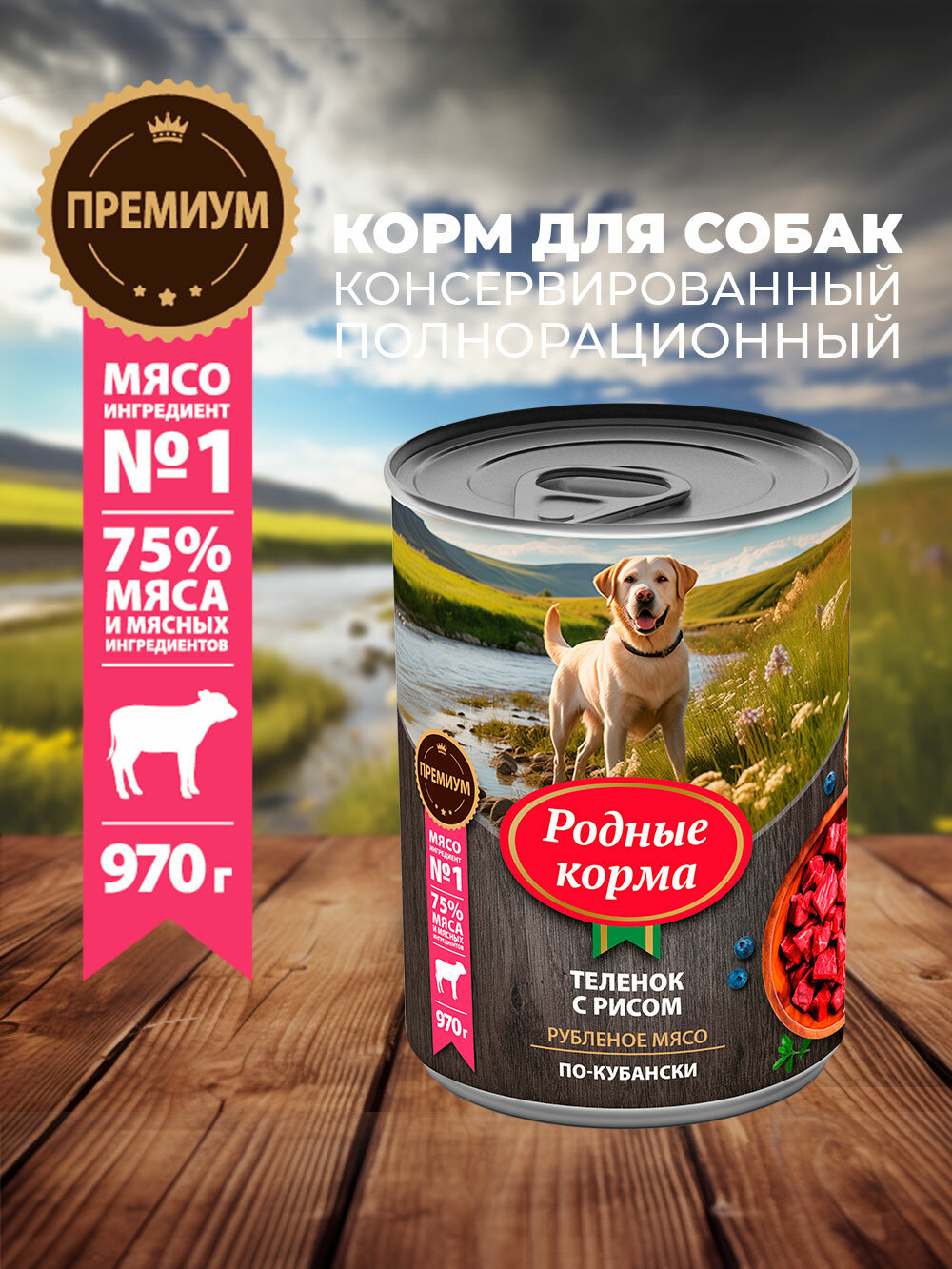 Родные корма 970 г консервы для собак теленок с рисом по-кубански 1х6: сравнение цен, характеристики, фото, актуальное наличие и цены.
