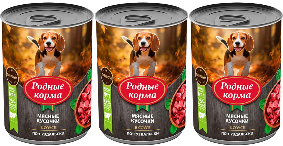 Родные корма консервы для собак мясные кусочки в соусе по-суздальски,970 г,3 шт: сравнение цен, характеристики, фото, актуальное наличие и цены.
