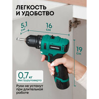 - Легкий вес тушки - составляет всего 700 грамм (850 гр. с АКБ) - Компактность: габаритные размеры 16х5.1х19 см - удобно для маленькой жилплощади, экономит пространство - Бесщеточный двигатель: на 20% производительнее щеточных аналогов - Быстрый заряд: 1 АКБ до 40 минут - Прорезиненная, эргономичная рукоять: рука не устает, инструмент не скользит и не натирает ладонь - Яркая LED-подсветка рабочей зоны - Гарантия 5 лет от российского бренда