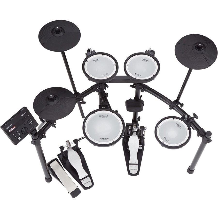 Компактный, бюджетный и вместе с тем обладающий профессиональными звуком, функционалом и возможностями игры комплект ударных TD-07DMK является отправной точкой, с которой можно начинать свое общение с ударными V-Drums серии TD-07. Несмотря на то, что пэды меньше, чем у более старших моделей, вы все равно получите незабываемое удовольствие от игры на малом барабане PDX-8 и трех томах PDX-6A, поскольку все они оборудованы удивительно бесшумными двойными сетчатыми мембранами компании Roland. Компактные тарелки CY-5 крэш и райд обеспечивают выразительность игры в условиях недостатка свободного пространства, а монтируемый с рамой пэд бас-барабана превращает этот комплект ударных серии TD-07 в идеальный для домашнего использования. Вопреки компактным размерам, вы можете решать достаточно серьезные задачи благодаря мощным креативным возможностям, простирающимся далеко за границы доступного для любой акустической установки ударных, включая аутентичные установки ударных для игры в самых разнообразных стилях, а также развернутые функции редактирования тембров для создания уникальных установок ударных. Добавьте к этому режим Coach, облегчающий процесс обучения игры на ударных, возможность связи по Bluetooth для игры под аккомпанемент музыки со смартфона, планшета или компьютера, а также поддержку USB для интеграции с компьютерно-ориентированным звукозаписывающим ПО.