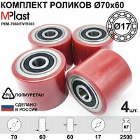 Купить Колеса (подвилочный ролик) 70х60/17 мм, 4 шт, полиуретановые, для гидравлической тележки рохля с доставкой по всей России.